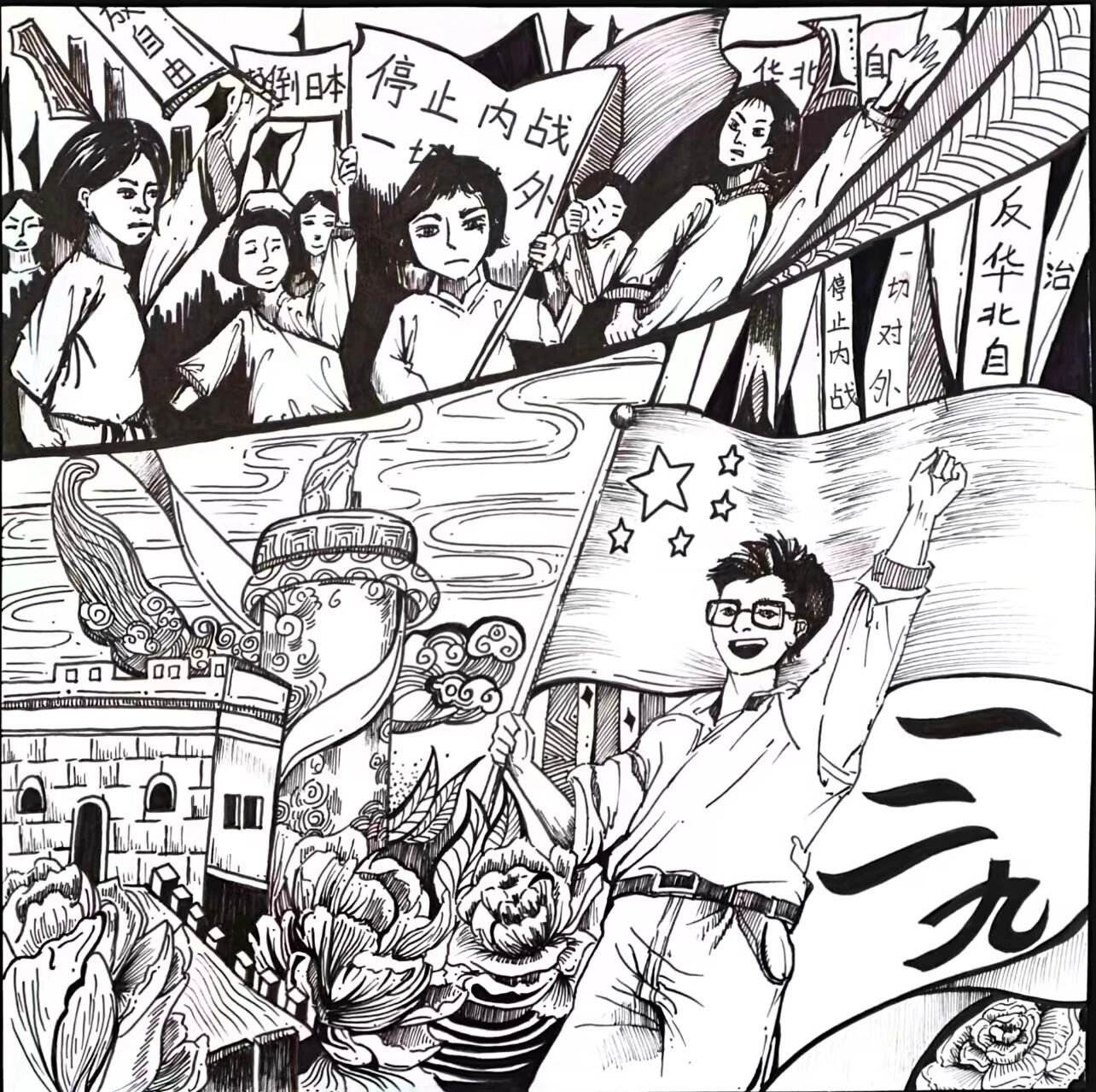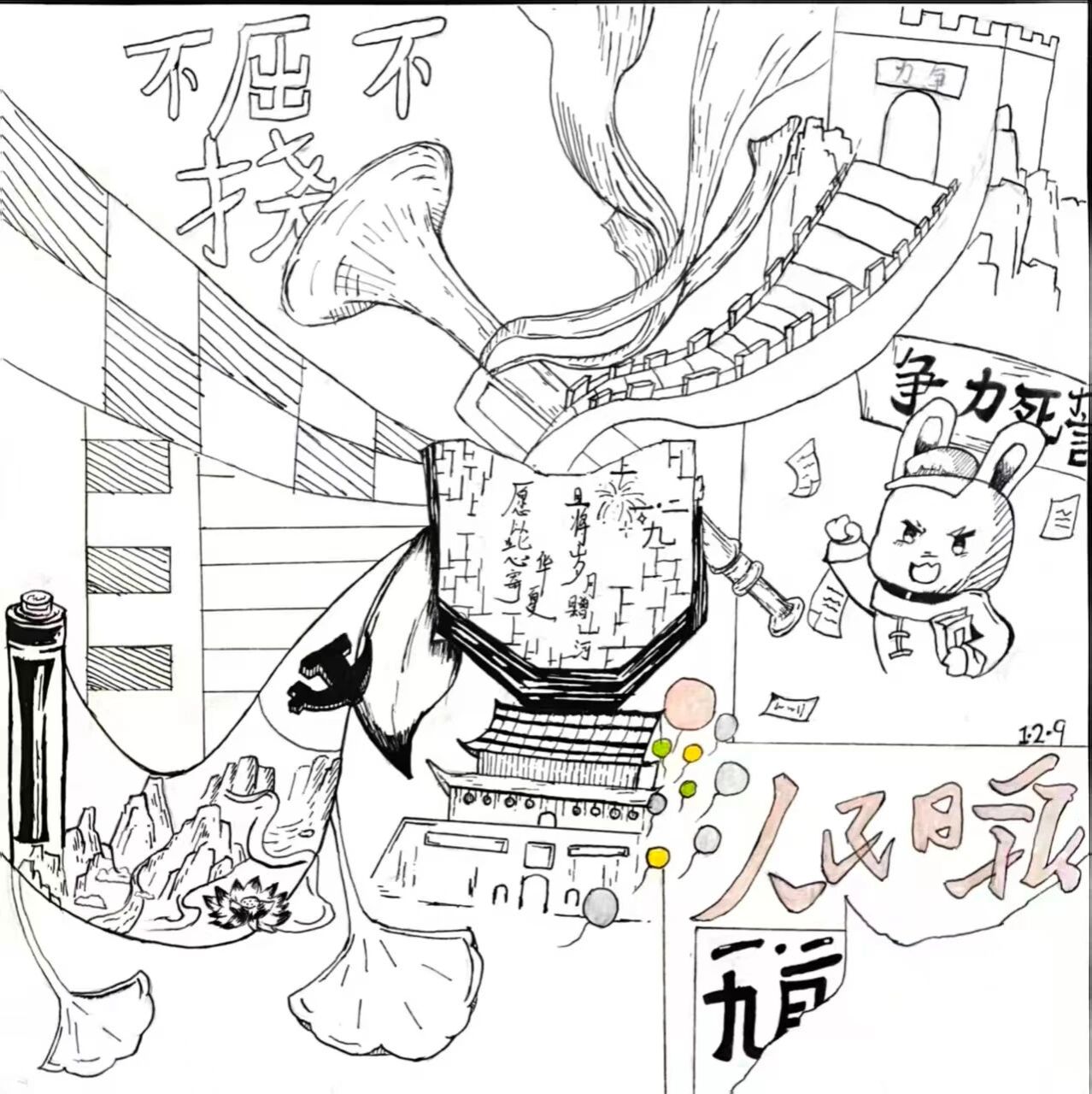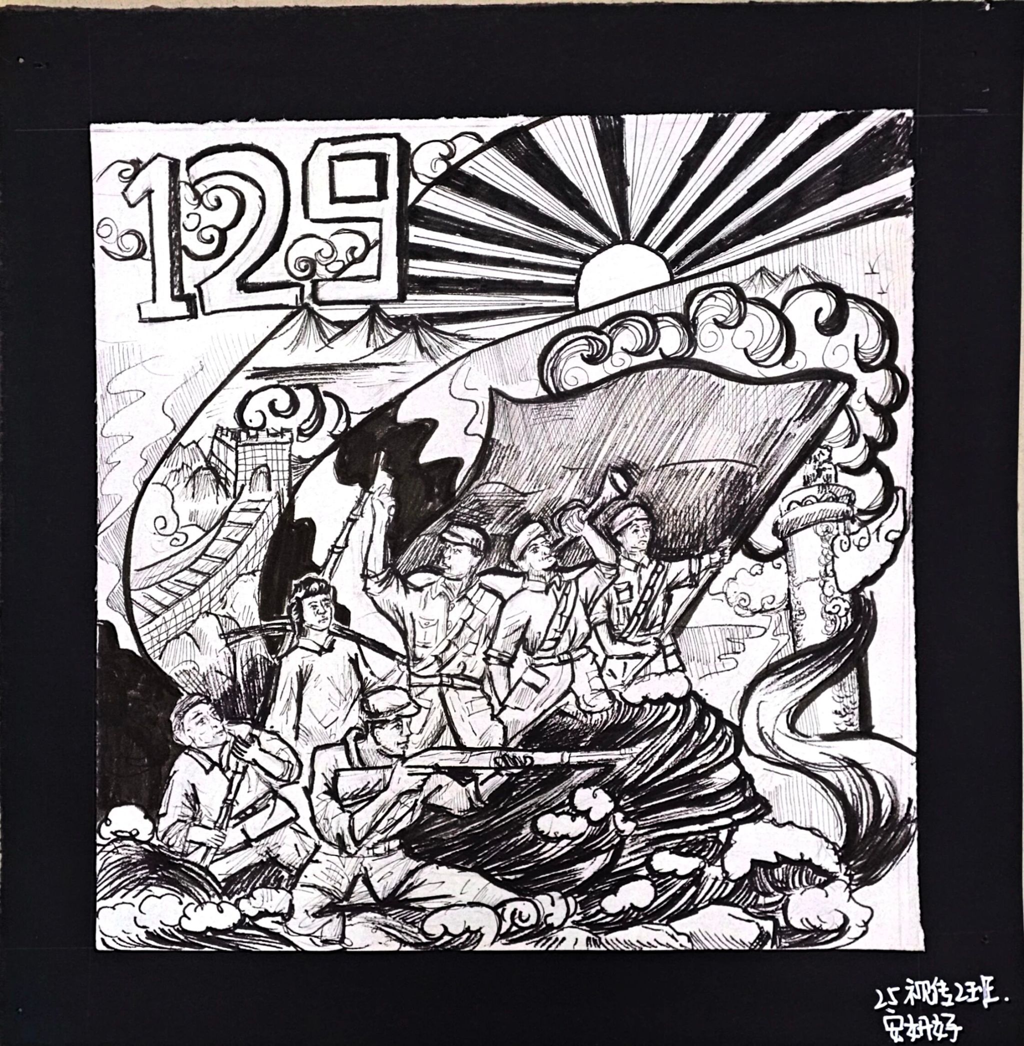 历史的长河奔腾不息,总有一些瞬间,如璀璨星辰,照亮民族的天空。“一二·九”运动,便是这样一个闪耀的时刻。在国家民族危在旦夕之际,青年学子们振臂高呼,用青春和热血,谱写了一曲气壮山河的爱国之歌。这份爱国精神,跨越时空,至今仍熠熠生辉。今天,数字文创学院开展“吾辈自强——纪念一二·九”运动手工绘画展,以画笔为媒,重温先辈们的英勇事迹,汲取奋进的力量,在新时代中彰显吾辈自强的风采。