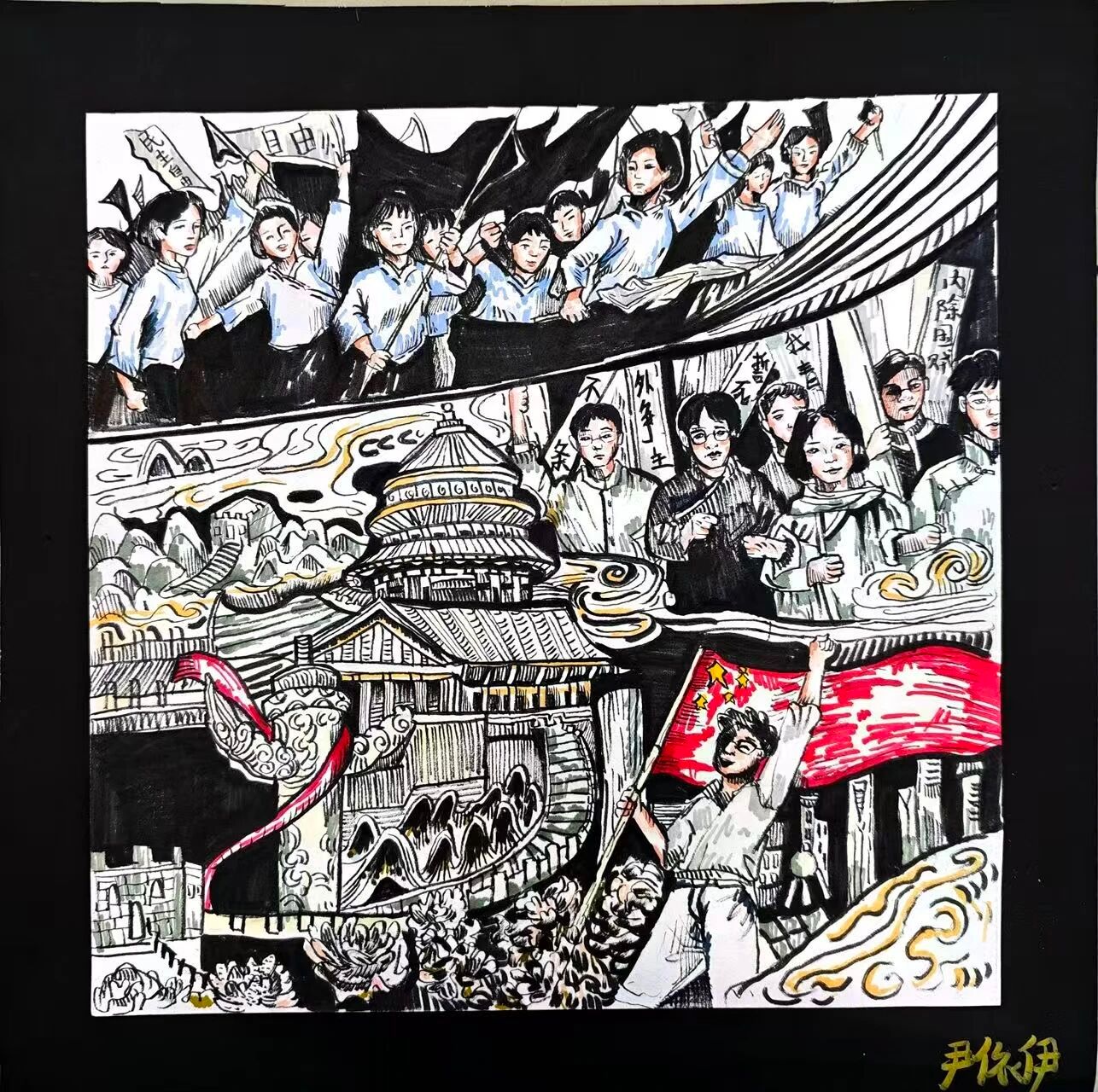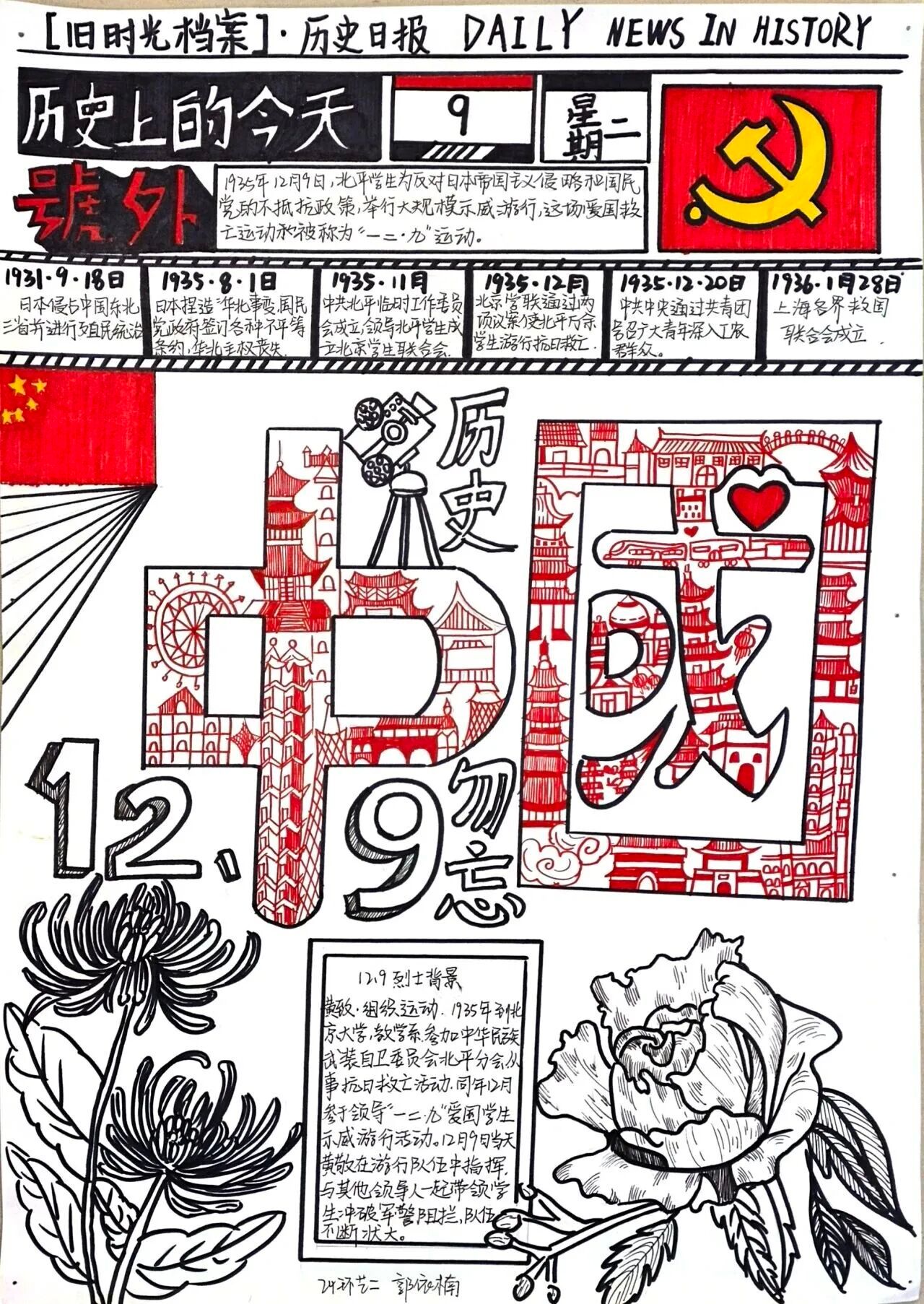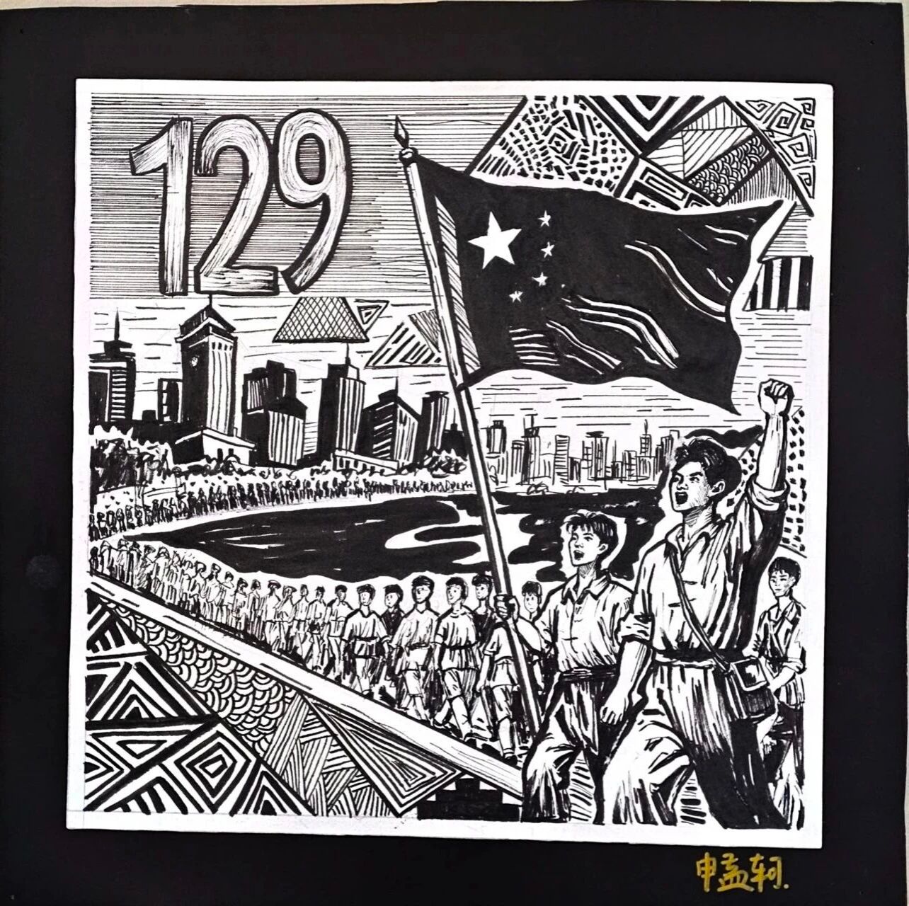 历史的长河奔腾不息,总有一些瞬间,如璀璨星辰,照亮民族的天空。“一二·九”运动,便是这样一个闪耀的时刻。在国家民族危在旦夕之际,青年学子们振臂高呼,用青春和热血,谱写了一曲气壮山河的爱国之歌。这份爱国精神,跨越时空,至今仍熠熠生辉。今天,数字文创学院开展“吾辈自强——纪念一二·九”运动手工绘画展,以画笔为媒,重温先辈们的英勇事迹,汲取奋进的力量,在新时代中彰显吾辈自强的风采。