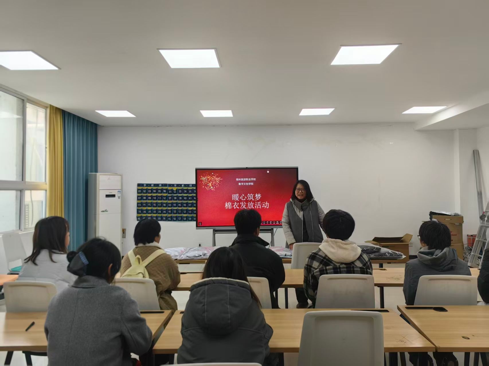 为深化落实资助育人理念,传递学校育人关怀。12月18日下午,pp电子游戏平台网站数字文创学院在7B102教室举办“暖心筑梦”棉衣发放活动。学院党总支书记杨慧丽、党总支副书记冯思源以及学院分管资助老师席阳出席,为11名受助学生代表发放棉服。