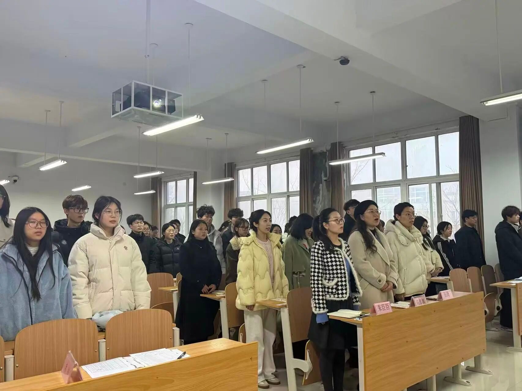 会议伊始,全体与会人员起立,齐声共唱中国共产主义青年团团歌,铿锵激昂的旋律回荡在整个会场,展现了新时代青年学子昂扬向上的精神风貌,也让全体团学干部重温入团初心,强化了团学干部的使命感与责任感。