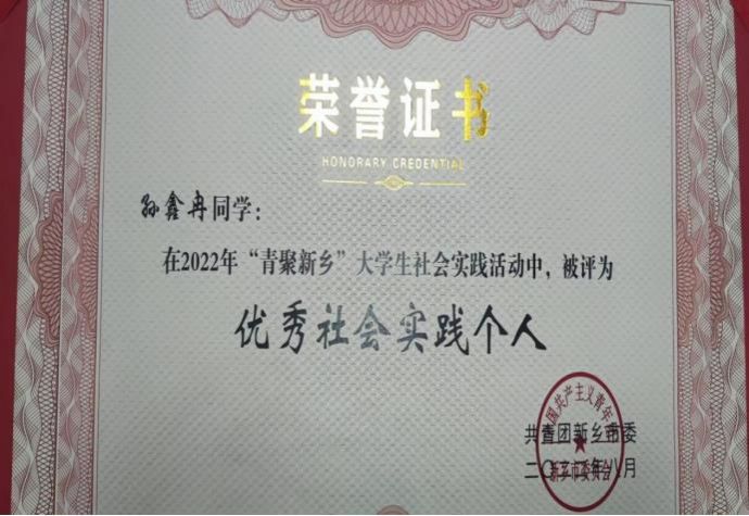 暑假期间,孙鑫冉同学看到学院团总支发出的号召大学生“向基层报到”的通知后,便立刻打开了河南共青团公众号了解情况。在平台上,他看到家乡招募大学生防汛救灾志愿者的公告后,便毫不犹豫的报名参加活动。经当地团组织调配,他成为了新乡市原阳县蒋庄乡的一名防汛储备负责人。