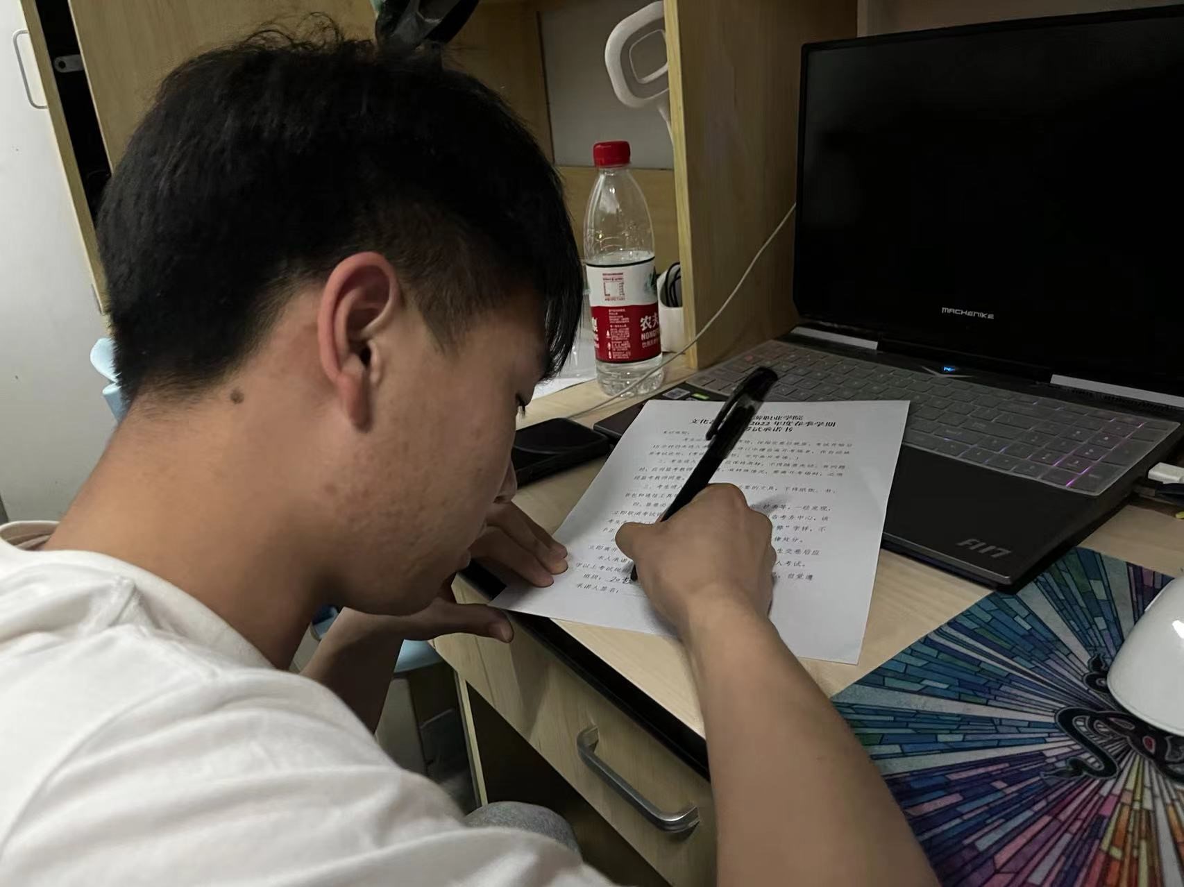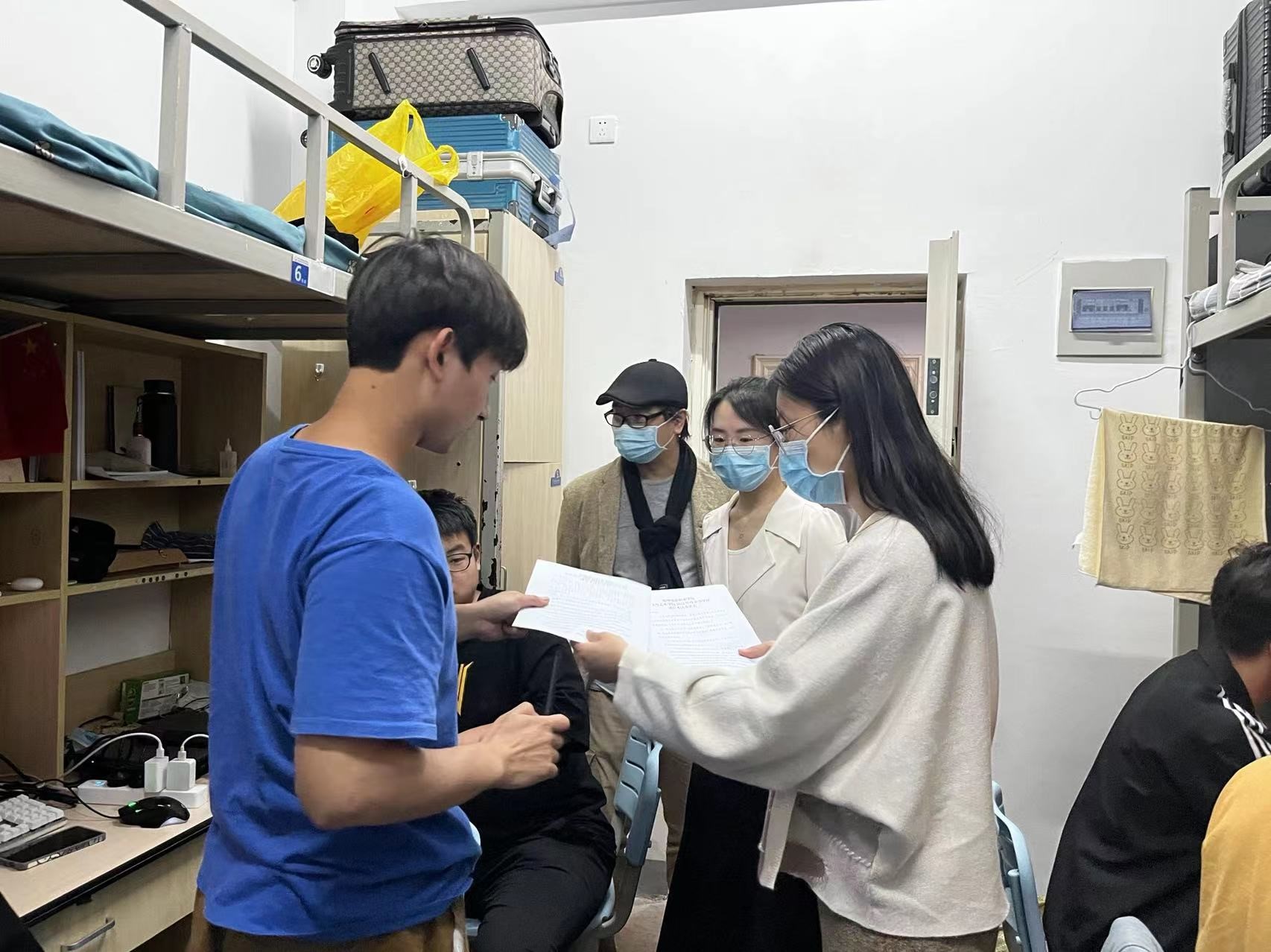 朱江老师深入宿舍学生发放诚信考试承诺书