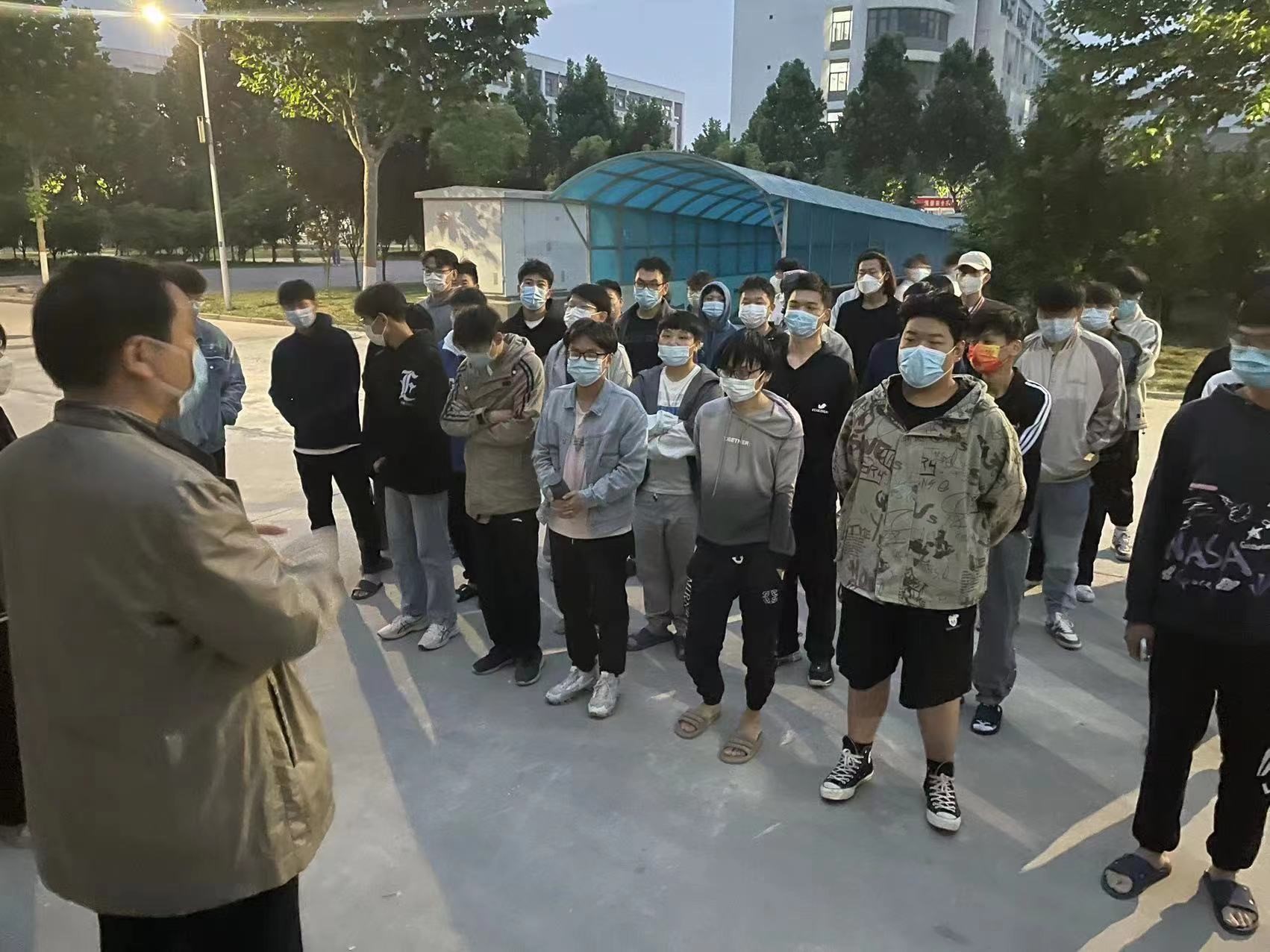 5月3日下午5点,到了下班时间,韩院长却匆匆的赶往行政楼开会,开完会来不及吃饭,院长就迅速把“学校紧急启动应急预案开启一周的全封闭管理”通知给每位老师,接着便马不停蹄的回家整理简单的洗漱用品及衣物,甚至准备了其他老师们可能会用到的物资。