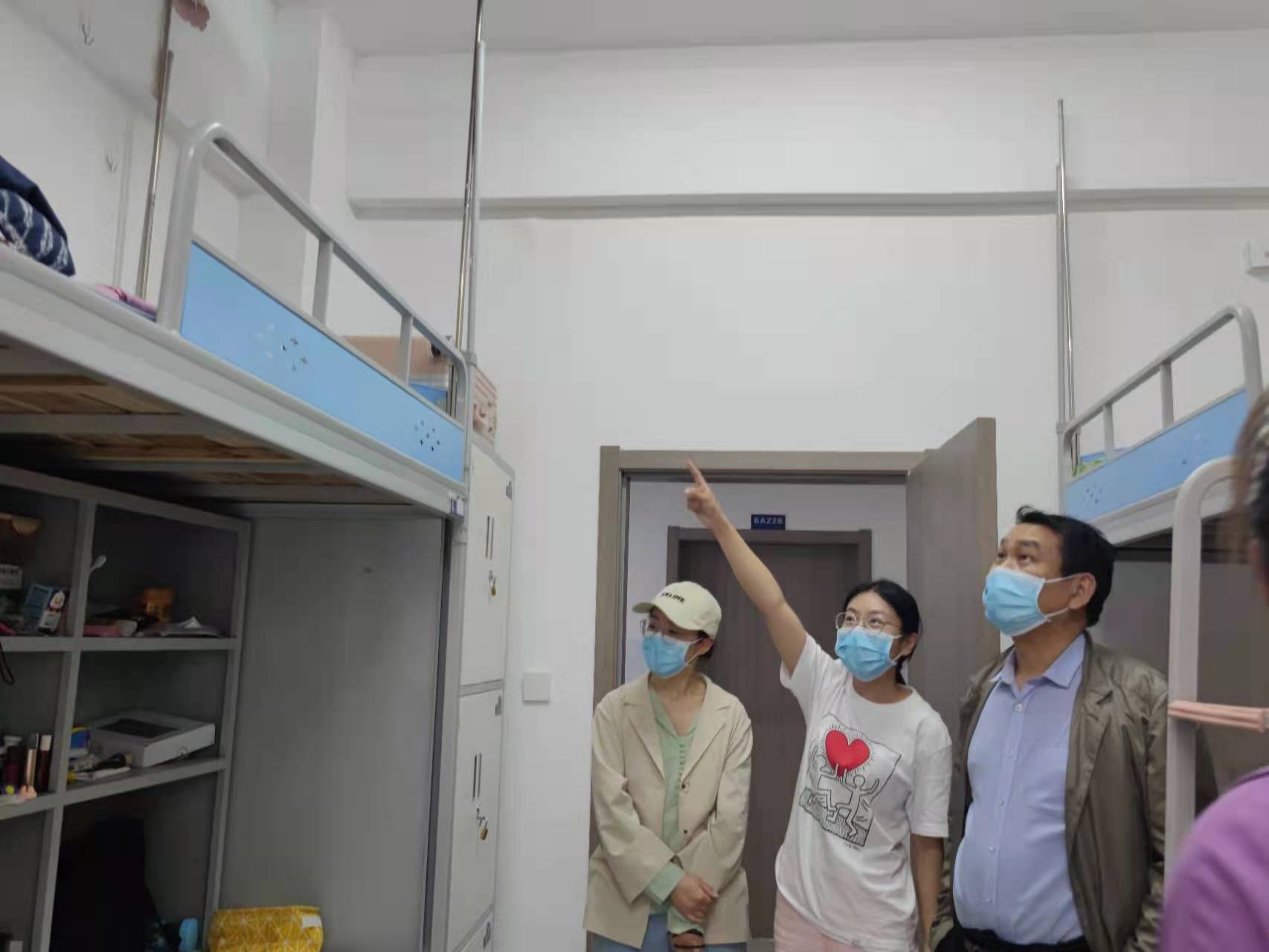 为推进疫情期间同学们的线上教学活动有序、高质量的进行,韩院长带领全体值班老师深入宿舍,提醒同学们要提前调整好学习状态,不能因线上课程而懈怠。同时,对寝室卫生环境、寝室安全意识提出更高的要求。他对值班老师和学生们不止一次说过,“我准备了很多物资,你们随时都可以去我办公室,千万注意身体健康,你们辛苦了。”