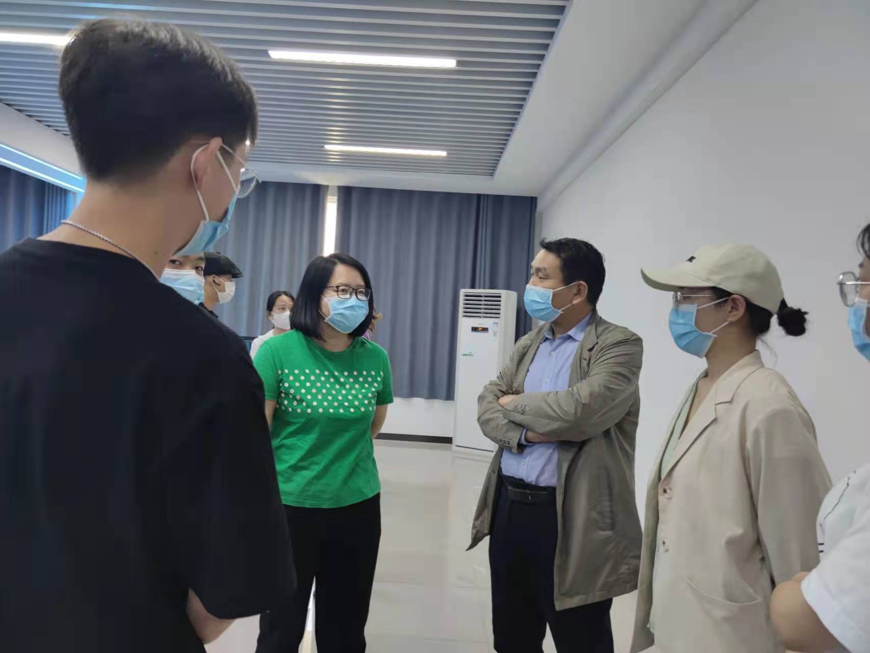 晚上12点之前,文化艺术学院已有五位教师到位。韩院长在关心学生安全健康的同时,也安抚了几位老师的情绪,让老师们又多了一份面对疫情的勇气。在去宿舍和去办公室的路上总是能看到韩院长急匆匆的背影。在学校下达通知,学生要在宿舍上网课之后,韩院长第一时间走进学生宿舍,聆听学生诉求、摸排学生健康状况并做好心理安抚工作,告诉同学们要共克时艰,迎难而上,不畏艰辛。韩院长用实际行动践行着教育人的初心和使命!