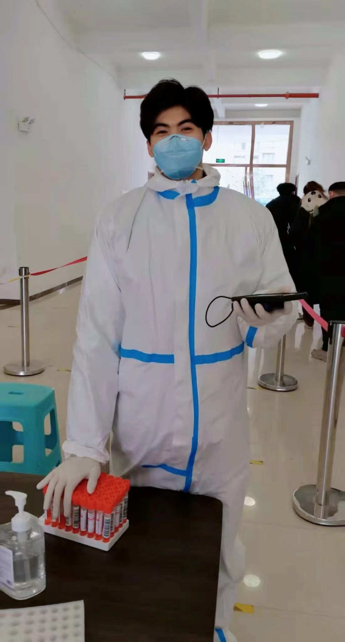 宋京阳,pp电子游戏平台网站文化艺术学院,19级环艺二班学生,中共预备党员,面对突如其来的新型冠状肺炎疫情,在全郑州按下暂停键的时候,他不怕艰苦,成为了一名逆行者,每天奔波在核酸检测现场和社区大门口,每天顶着烈日做着普通又不平凡的工作,物资填补,核酸扫码登记,核酸试管转运,门岗把守测温等工作,他说趁年轻做点力所能及的有意义的事情吧,出己力、尽己责,多添力、少添乱。抗击疫情是一场没有人能够置之度外的战斗,每个人都与之休戚与共、息息相关。众人拾柴火焰高”,战胜疫情,不是一个人的事,也不是一些人的事,而是我们所有人共同的事,全国人民团结一致、同舟共济,拧成一股绳一同应对疫情,战胜它一定不会远!
