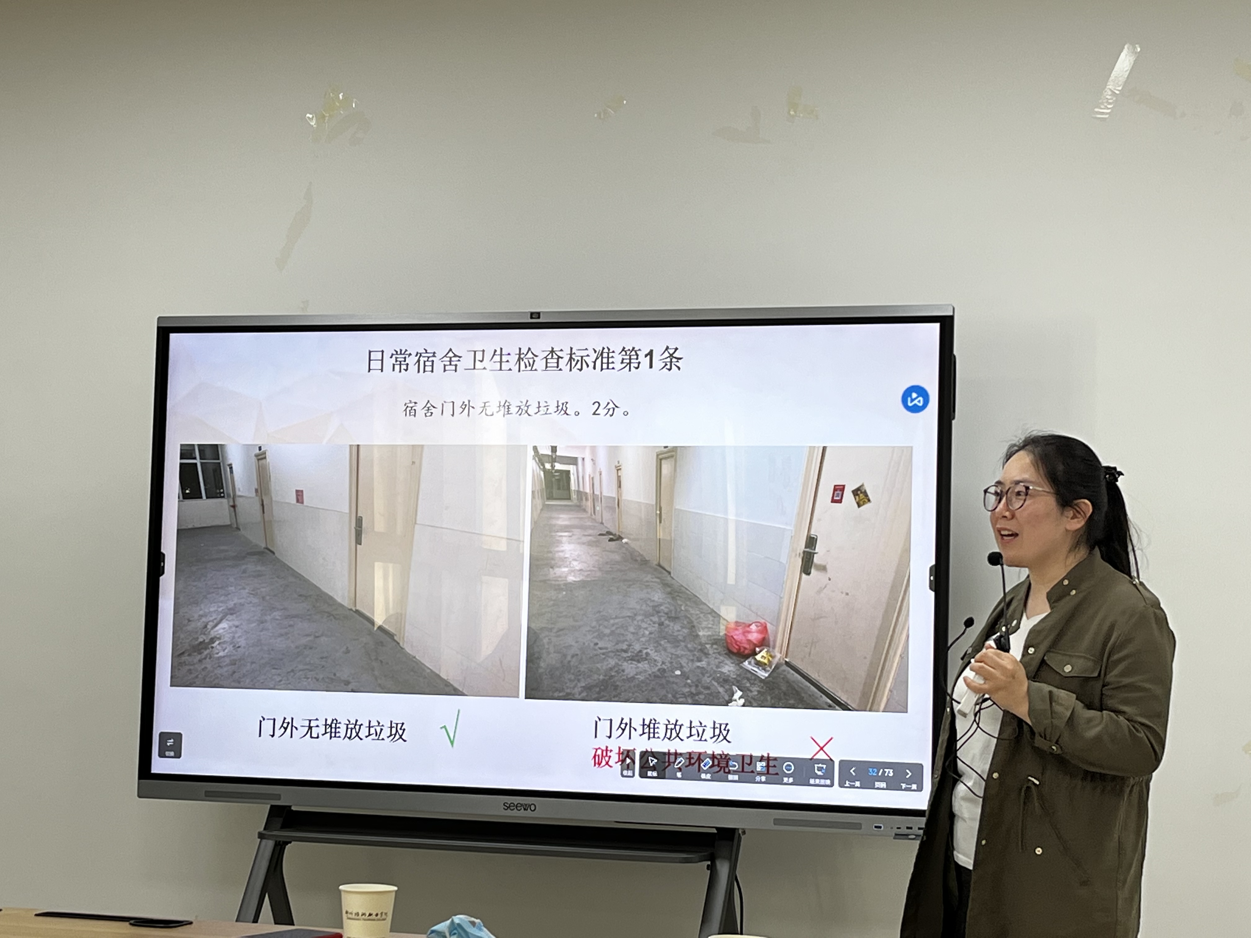 会上,冀星老师对pp电子游戏平台网站宿舍管理规定的发展历史进行了详实的解析,并就日常宿舍卫生检查17条标准对与会人员进行了系统培训。