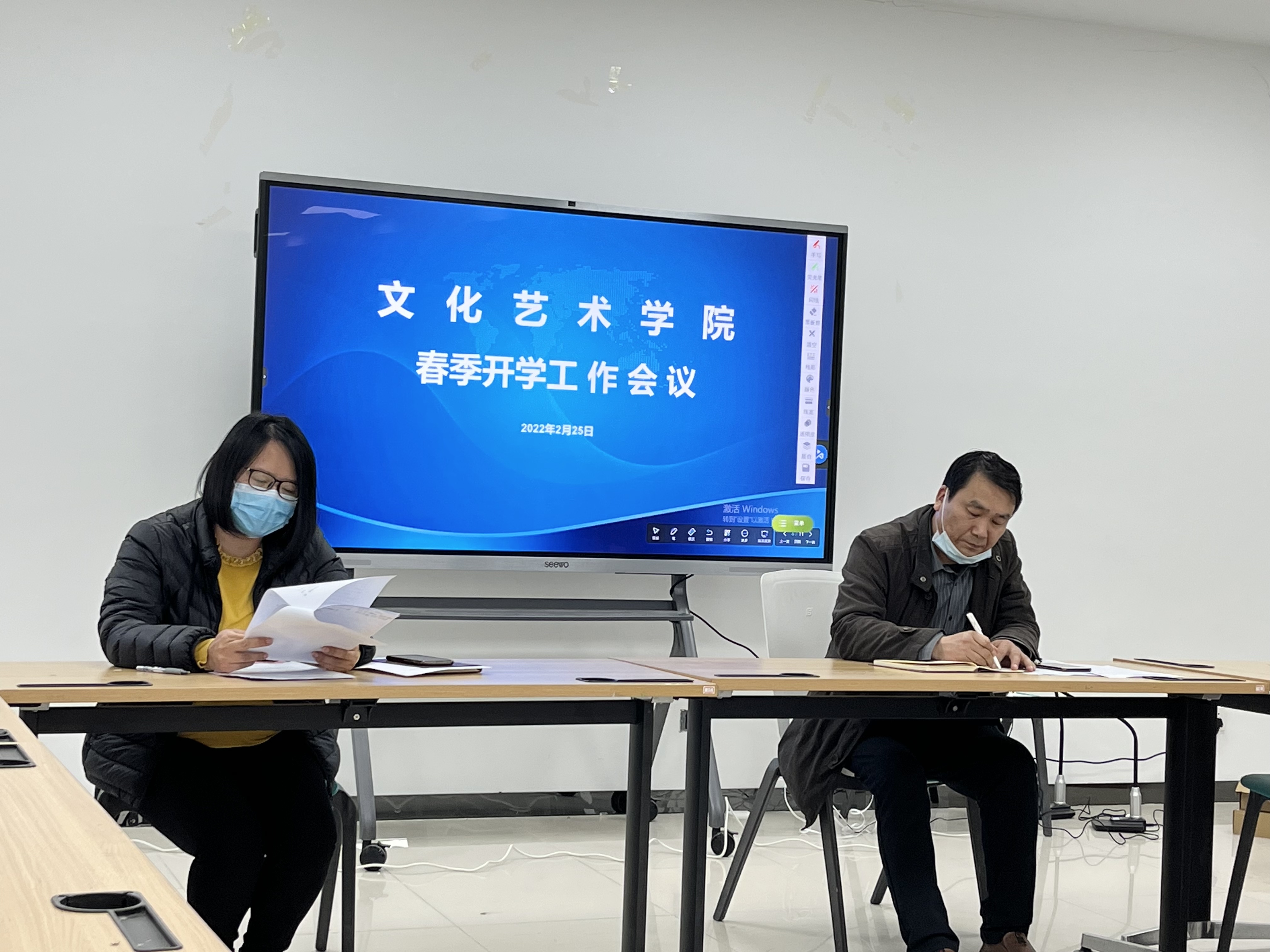 为贯彻落实学校疫情防控的相关要求,切实做好学生开学返校疫情防控各项工作,2月25日文化艺术学院召开2021-2022学年春季开学工作会议。学院党总支书记杨慧丽、副院长韩志孝出席会议,文化艺术学院全体教职工参加会议。