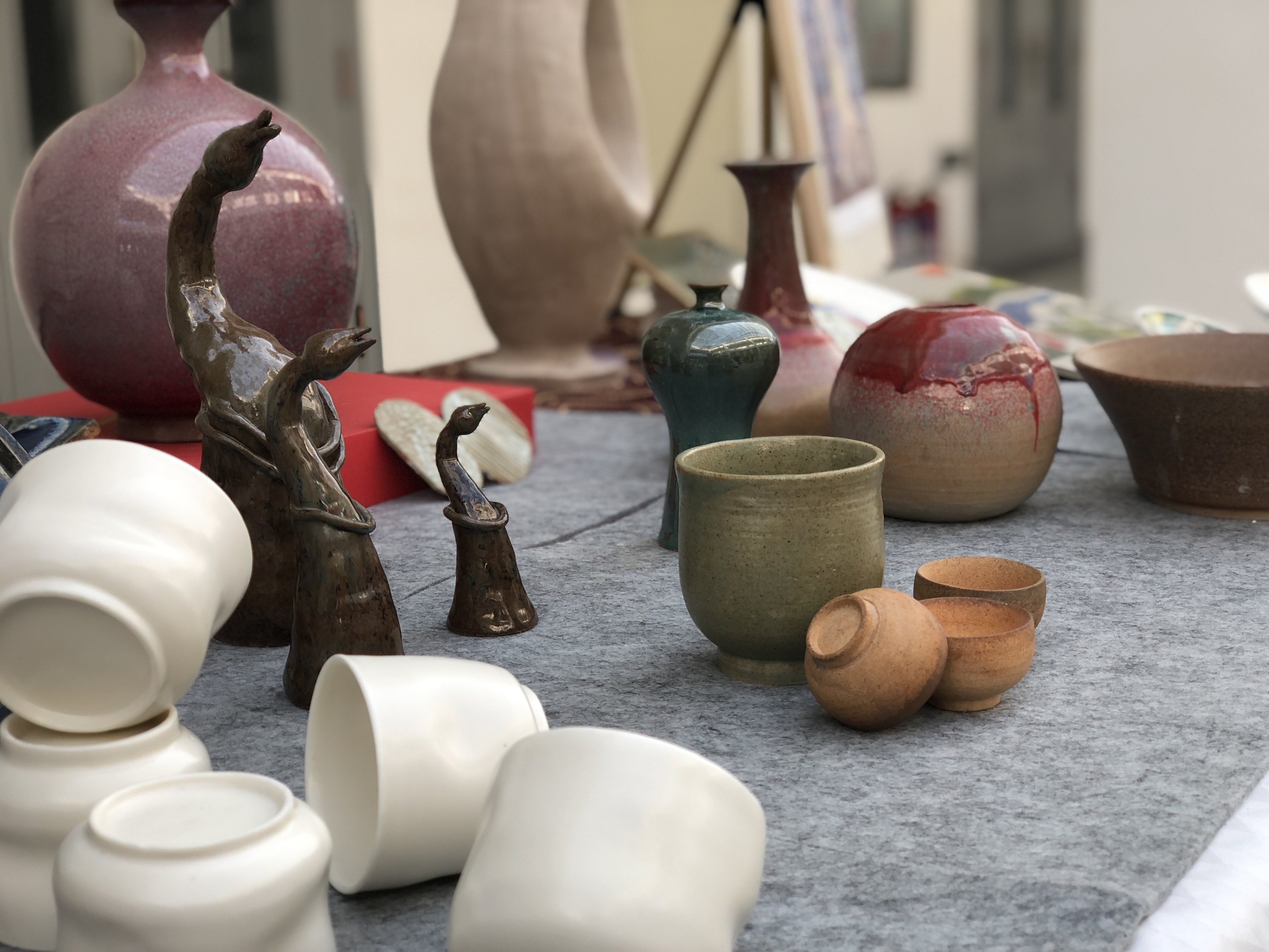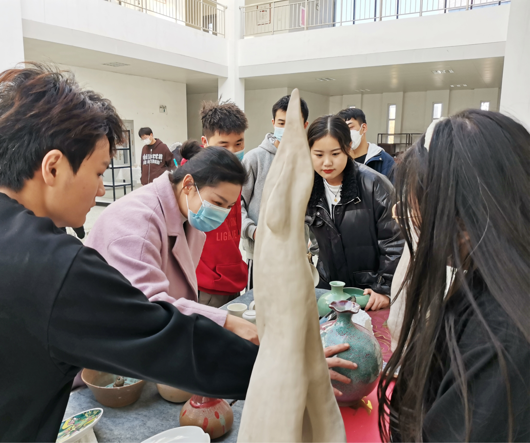 活动当中,主办方邀请部分师生代表挥毫泼墨,留下了很多对临近毕业得学生的祝福墨笔;以国画为主题的展品,既体现出优秀的传统绘画技法,又体现出学生独特的艺术风格;以陶瓷为主题的展品同样受到关注,学生给观众们讲解陶瓷从无到有的过程,好不热闹。