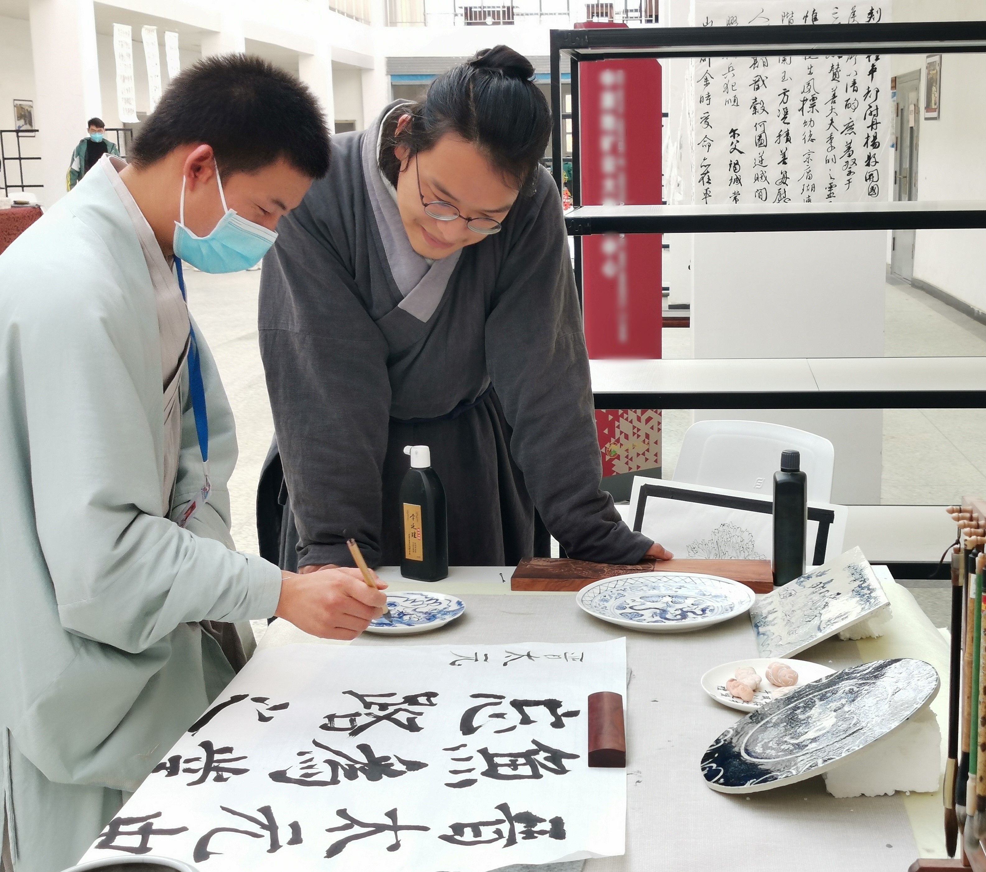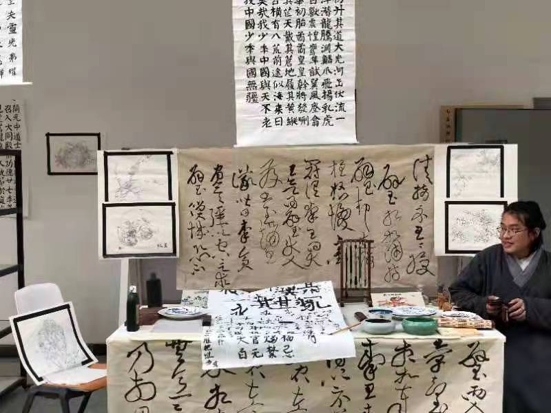 本次活动由民族传统技艺教研室朱江主任主办,并邀请文化艺术学院各个专业老师和学生共同感受民族传统技艺的魅力。19级民族传统技艺的学生作品形式多样,风格迥异,主题鲜明,不乏精品之作。其中,书法作品系列人气颇高,有的工整隽秀,有的挥洒自如,甚是有趣,得到广大师生一致好评。