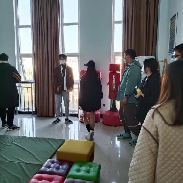 为宣传普及心理健康知识,使学生了解大学生心理健康教育中心的设施及服务,增强大学生的心理保健意识。于11月10日下午3:30心教部成员带领21级心理委员去参观心理健康教育中心,并为他们进行讲解。