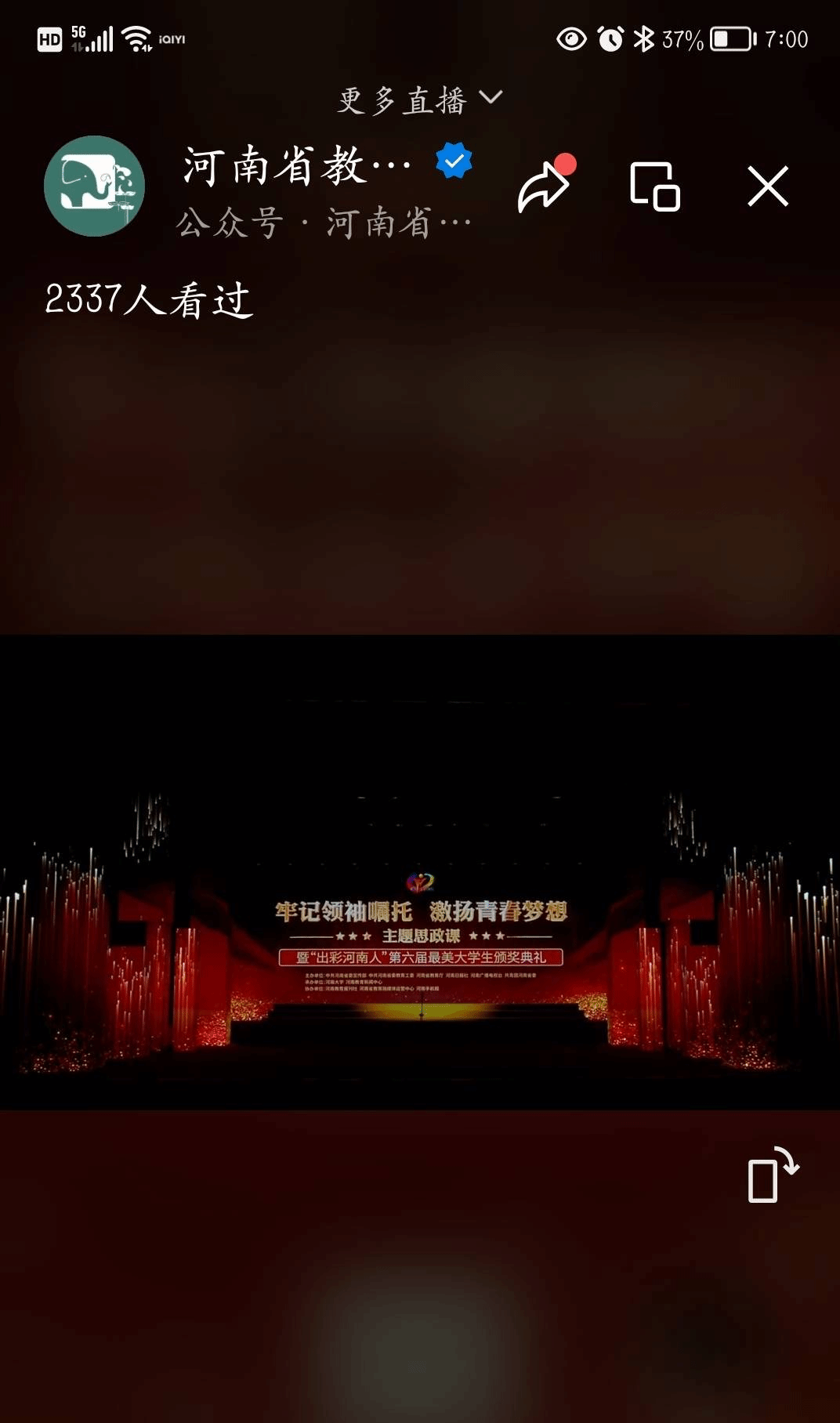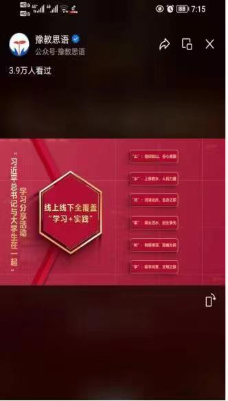 为深入贯彻落实习近平新时代中国特色社会主义思想和党的二十大精神,引导广大高校的学生在学习身边先进榜样中努力成长为有理想、敢担当、能吃苦、肯奋斗的新时代好青年。文化艺术学院于6月25日晚19:00组织同学们在线上观看“牢记领袖嘱托,激扬青春梦想”主题思政课暨“出彩河南人”第六届最美大学生颁奖典礼。
