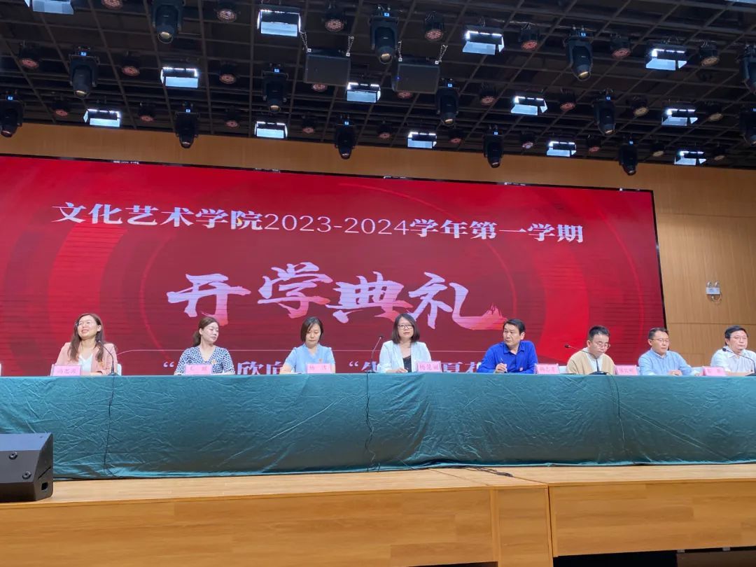 为了更好地让新生迎接大学生活,9月20日下午三点,文化艺术学院2023-2024年第一学期开学典礼暨新生入学教育在大学生活动中心二楼举行。学院党总支书记杨慧丽、副院长(主持行政工作)韩志孝、学院办公室主任杨洁、动漫与数字媒体教研室主任翟文彬、歌舞表演教研室主任王丽、环境艺术设计教研室主任秦华、视传与工美教研室主任朱江、团总支书记冯思源以及 2023 级的辅导员和班主任们与新生共同参加,此次活动由冯思源主持。
