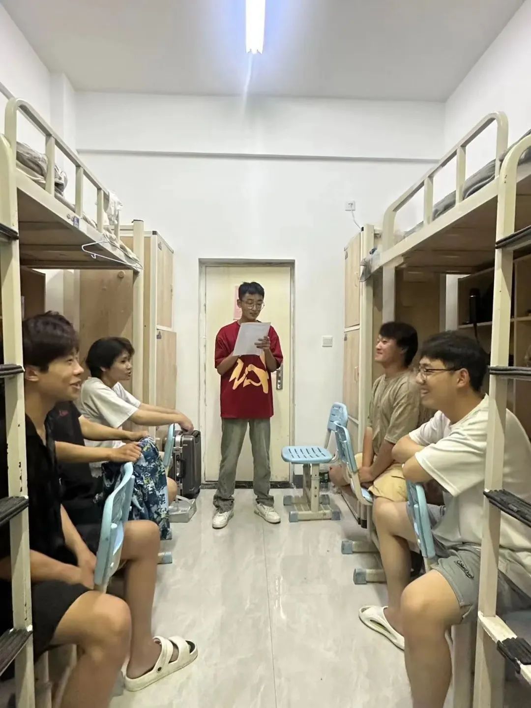 为进一步了解新生生活、军训情况,倾听同学们的心声,走进同学们的生活,为新生送关怀送温暖,我院持续开展新生学长、班副走访宿舍活动。