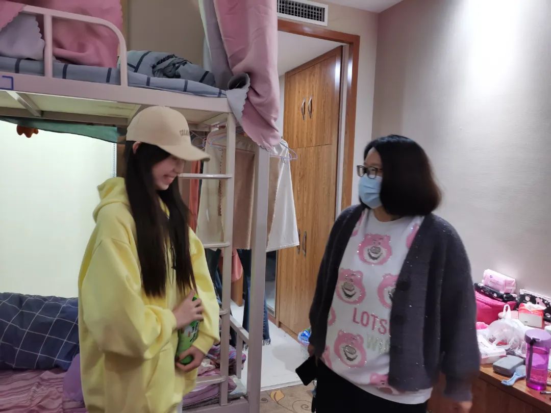 走访过程中,辅导员与学生亲切交流,询问同学们返校感受,且细心叮嘱同学们天冷加衣,注意预防感冒。