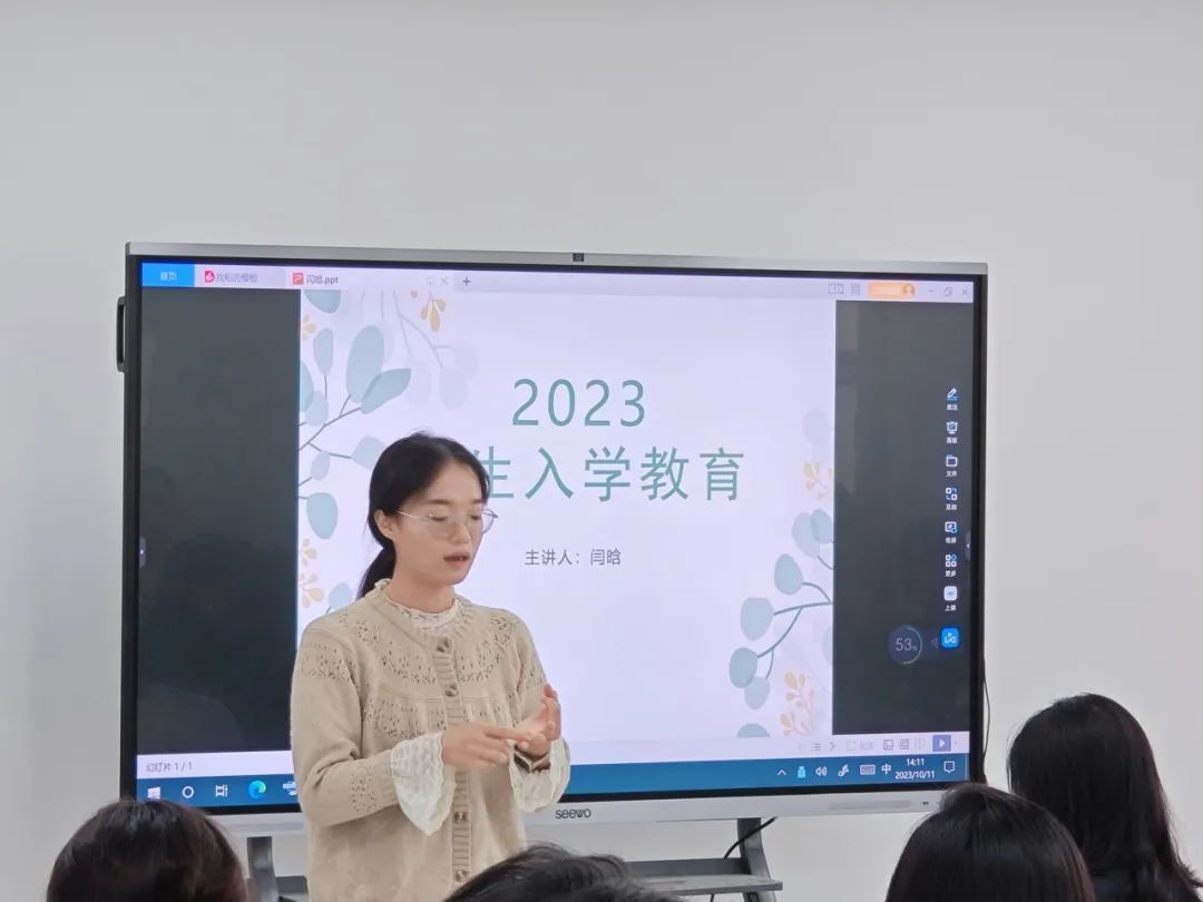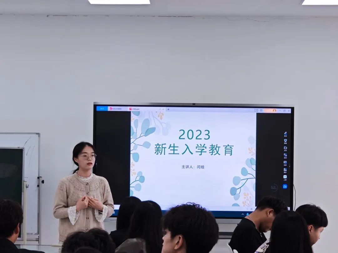 闫晗讲解了大学的生活和学习、校纪校规及学院的相关规定,同时分享了自己的人生感悟,她强调专业认知的重要性,并鼓励同学们要勇于探索、积极拓展自己的视野。
