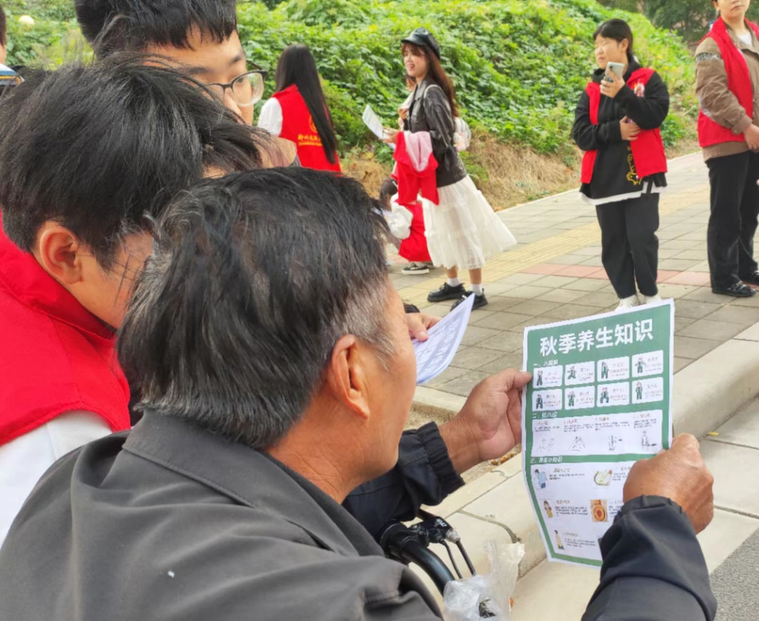 为了提高老年人的健康意识,普及科学养生、合理膳食知识,营造重阳节爱老敬老的氛围。10月23日文化艺术学院开展“我们的节日·重阳”活动,青志部和宣传部组织学生走进豫兴家苑社区开展活动。