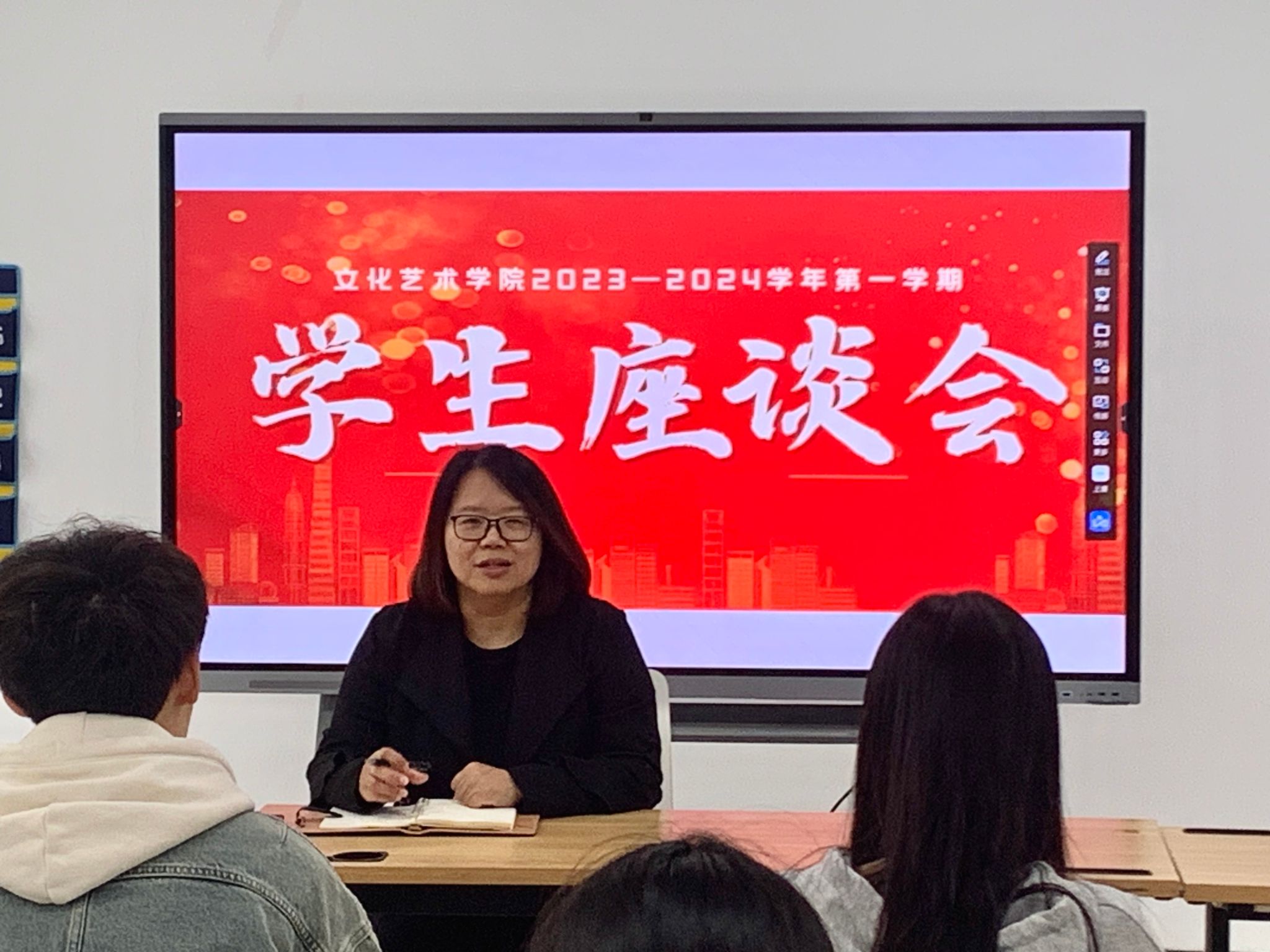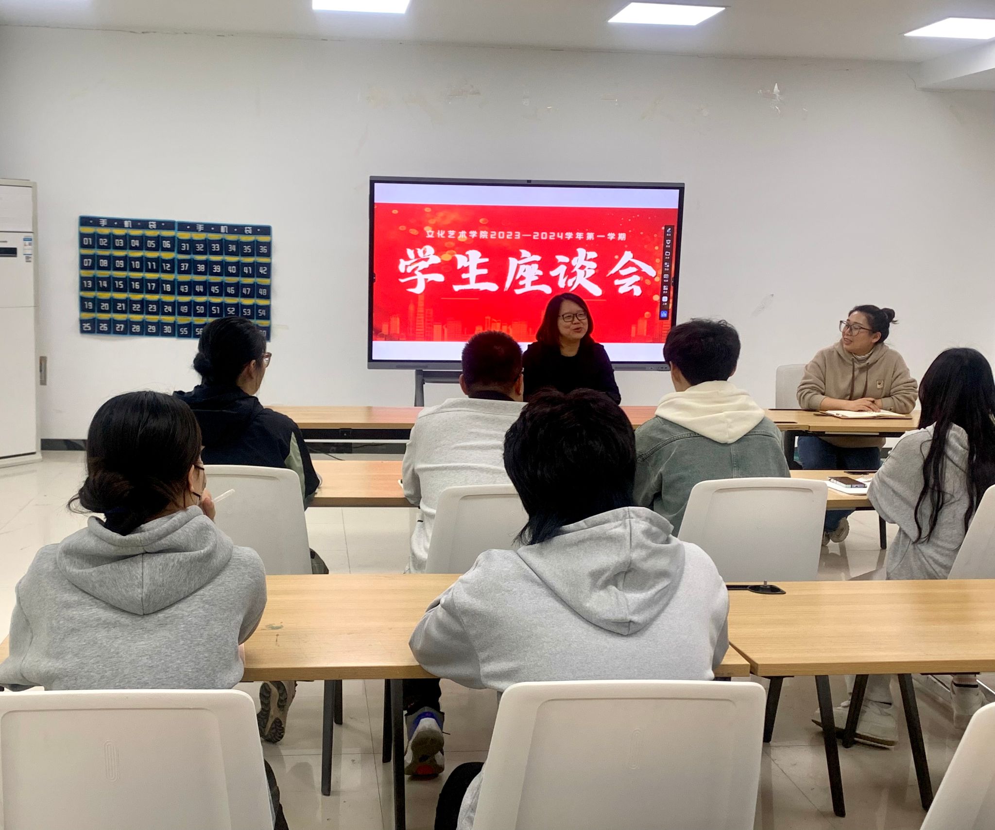 为深刻贯彻落实党的教育方针,提升立德树人成效,进一步深化教育教学工作,切实关注和回应青年大学生成长成才过程中的需求,营造和谐安宁的校园学习和生活环境,11月8日,文化艺术学院在游艺楼7B102会议室举办了2023-2024学年第一学期学生座谈会。会议由团总支书记冯思源主持,学院党总支书记杨慧丽参加座谈会,倾听学生心声。