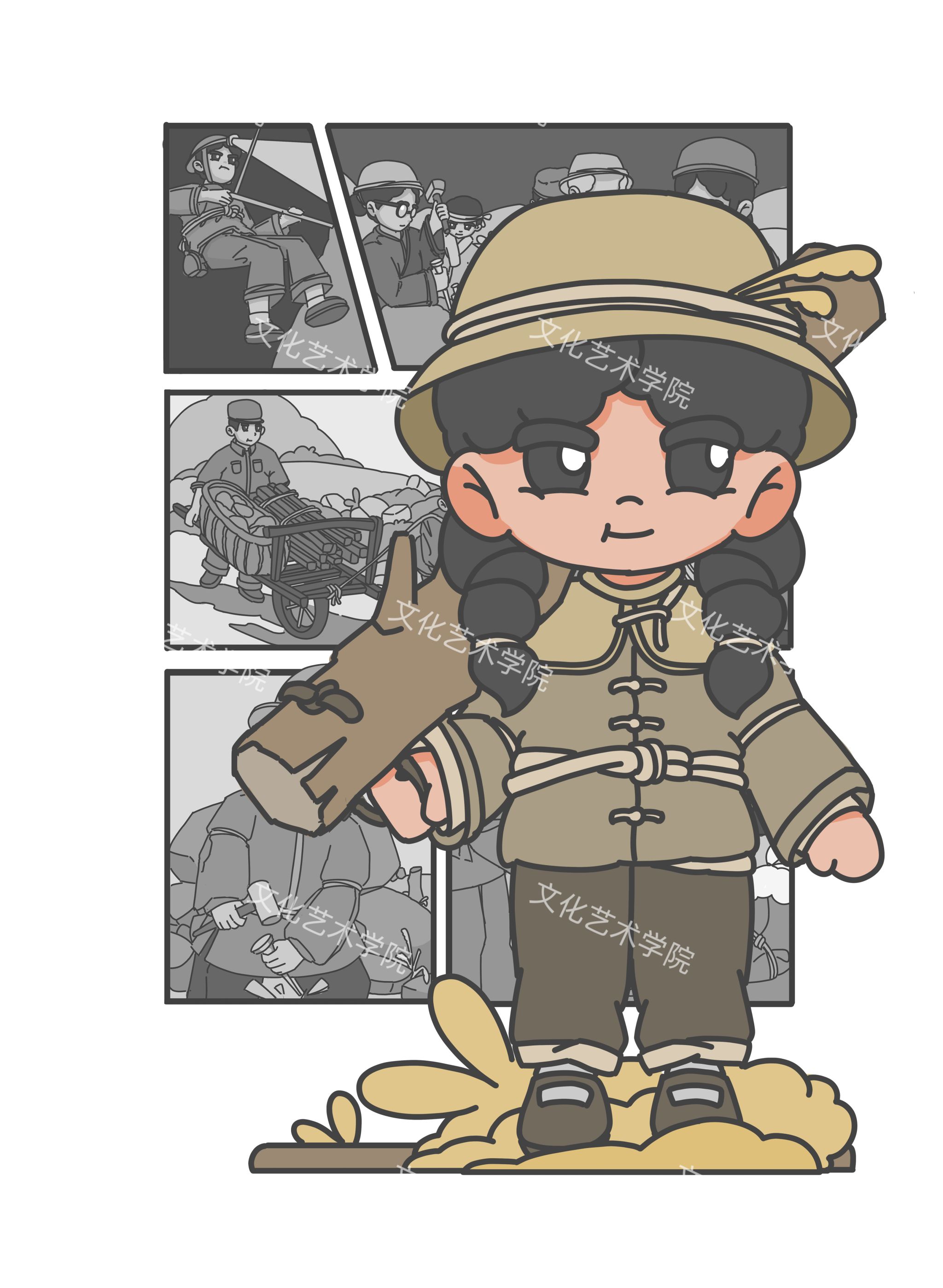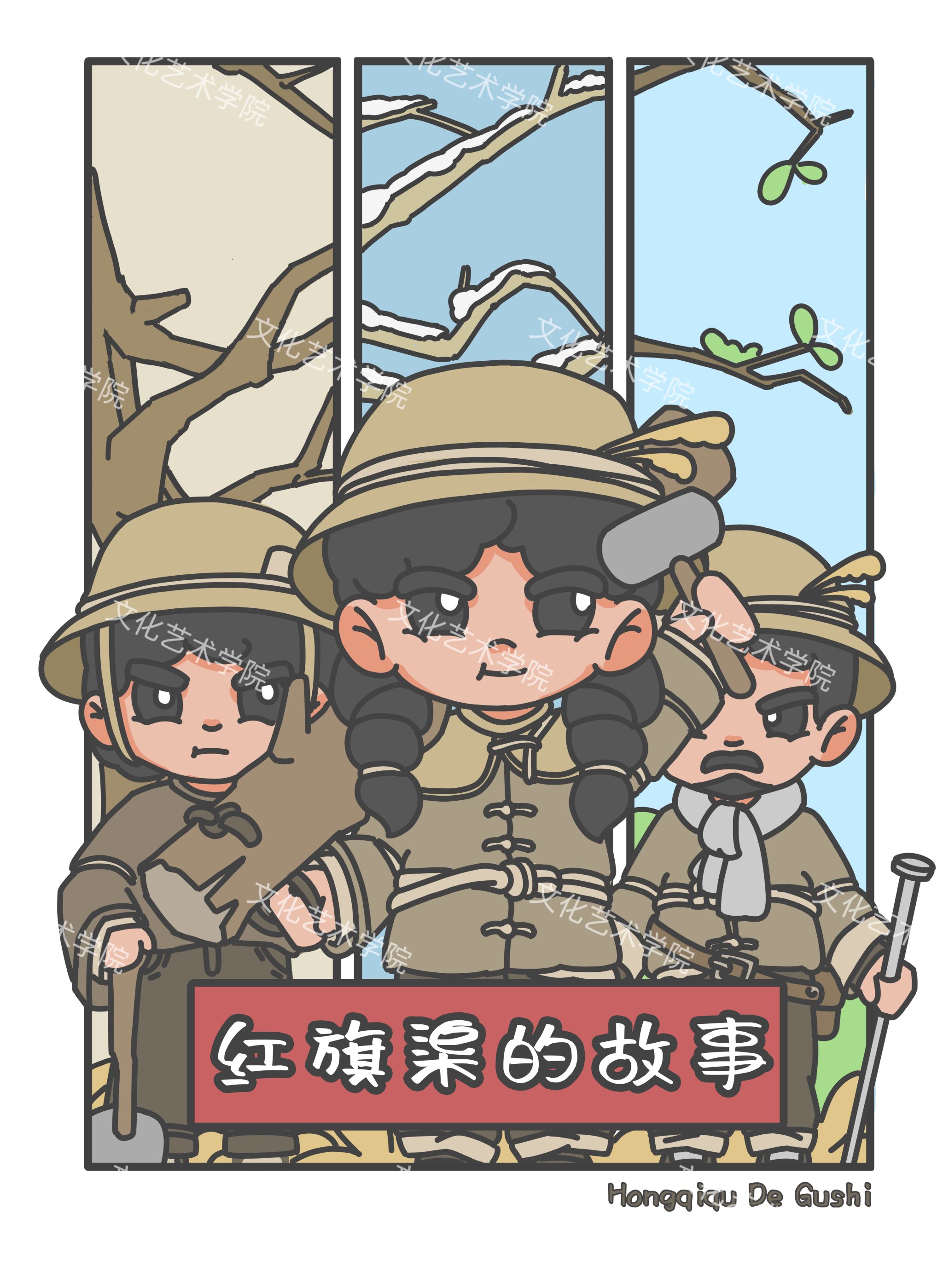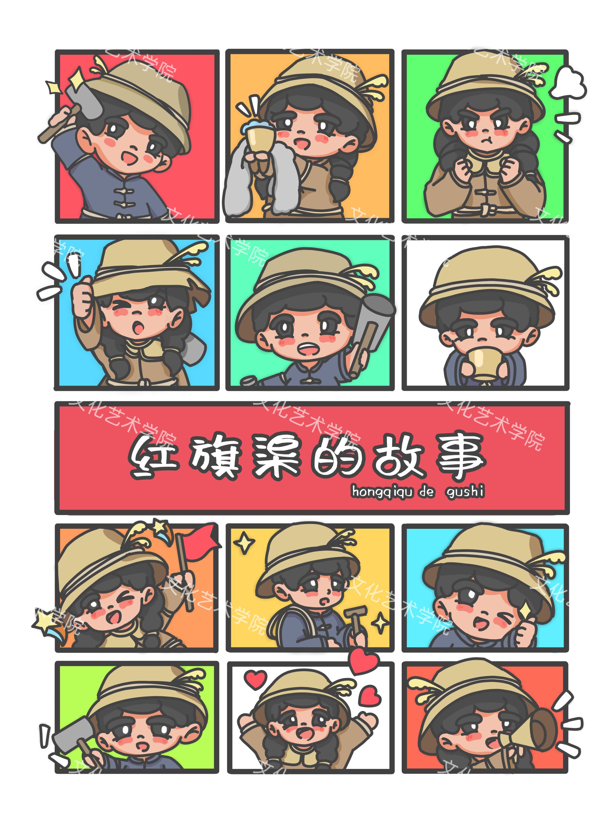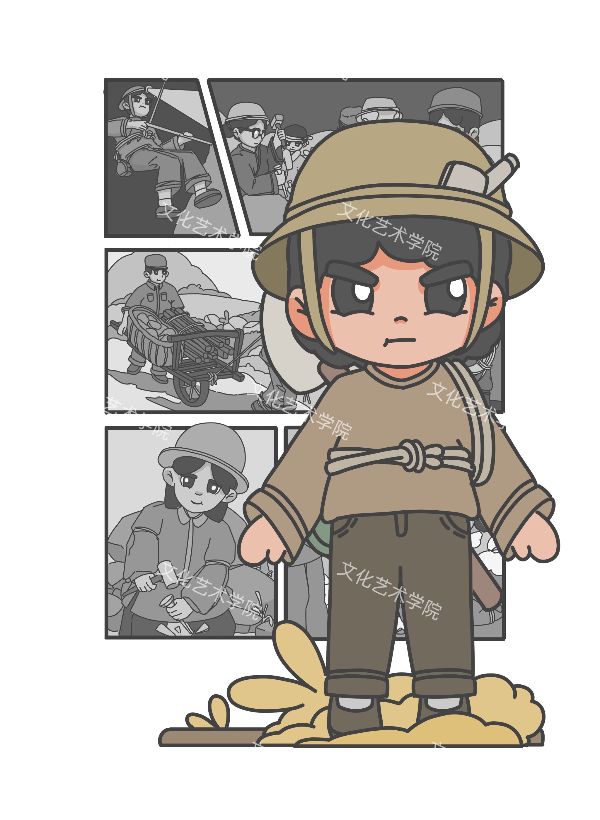 红旗渠精神,是中国工程史上的重要篇章,也是无数奋斗者坚韧不拔、艰苦奋斗的象征。借由这股奋进的精神,文化艺术学院宋子健老师带领着他的学生创作了一组饱含深意的动漫形象。
