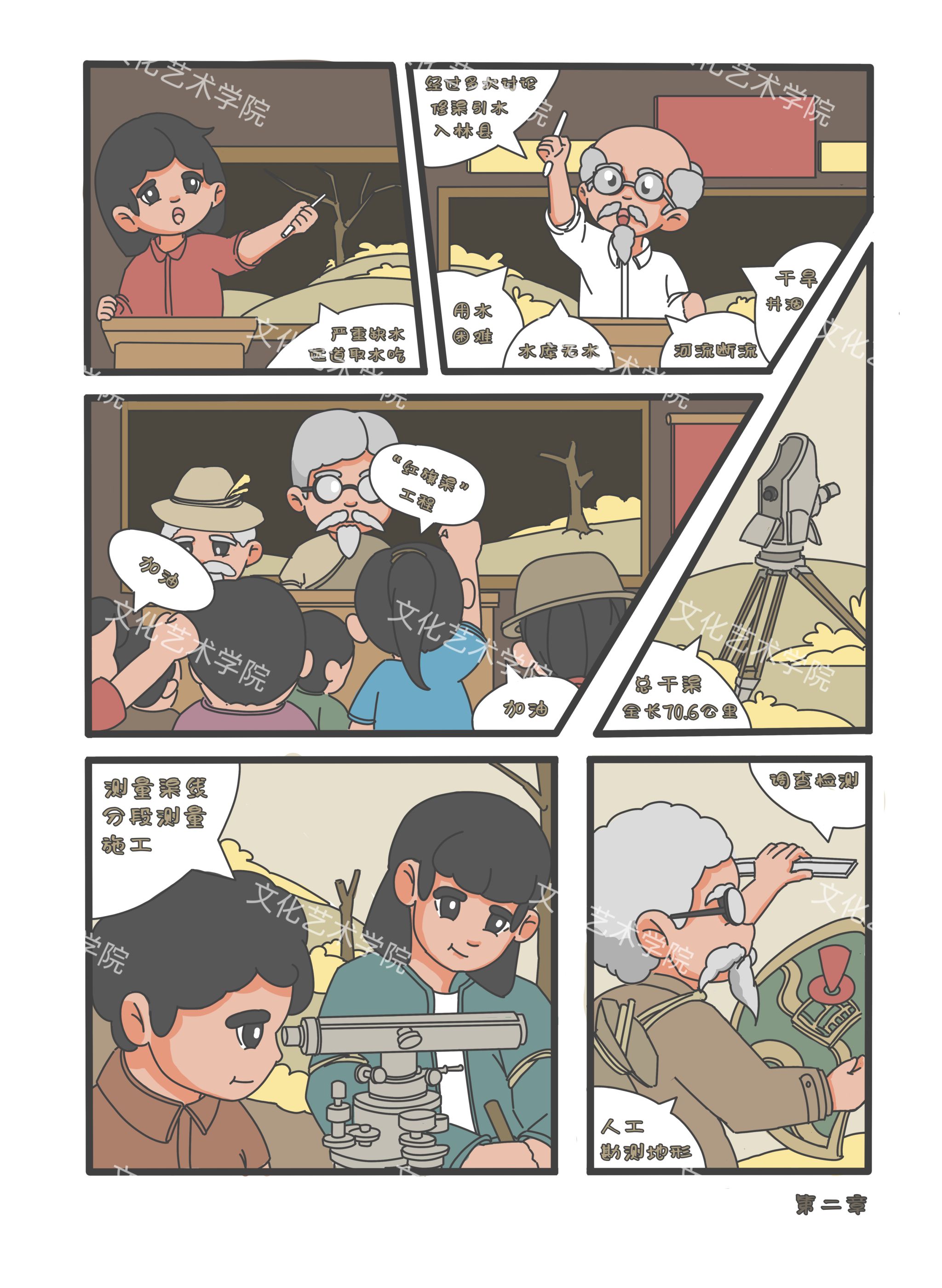 这些动漫形象传达着红旗渠精神的内涵、勇气、拼搏、创新、奉献,通过红旗渠的故事激励着学院的师生们砥砺前行,在文化艺术的道路上不断探索、不断创新。