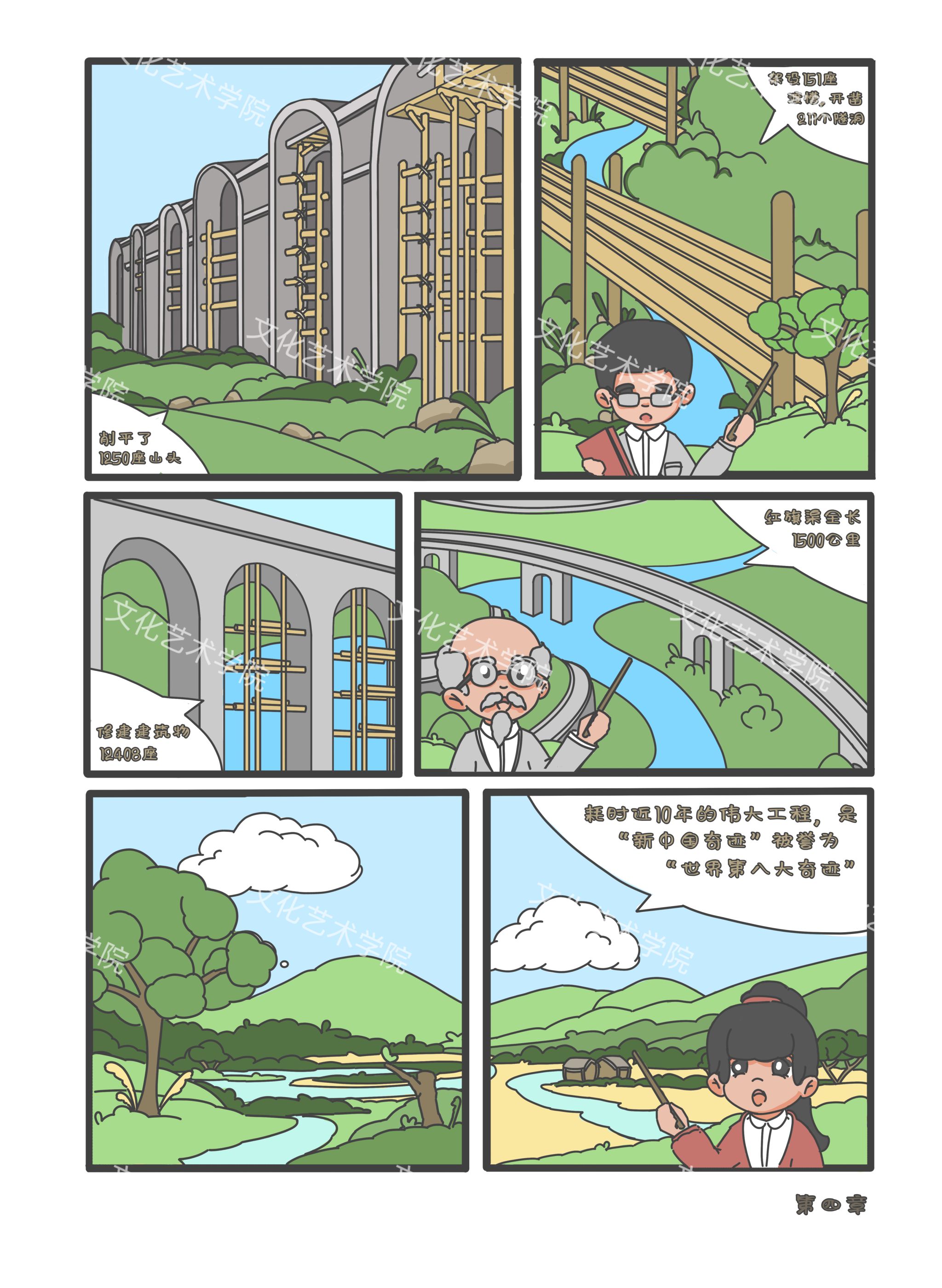 这组红旗渠故事的漫画创作是一面旗帜,在教育和艺术的道路上指引前行的方向,激发每一个学子发掘内心的潜能,传承和发扬着这份宝贵的精神财富。