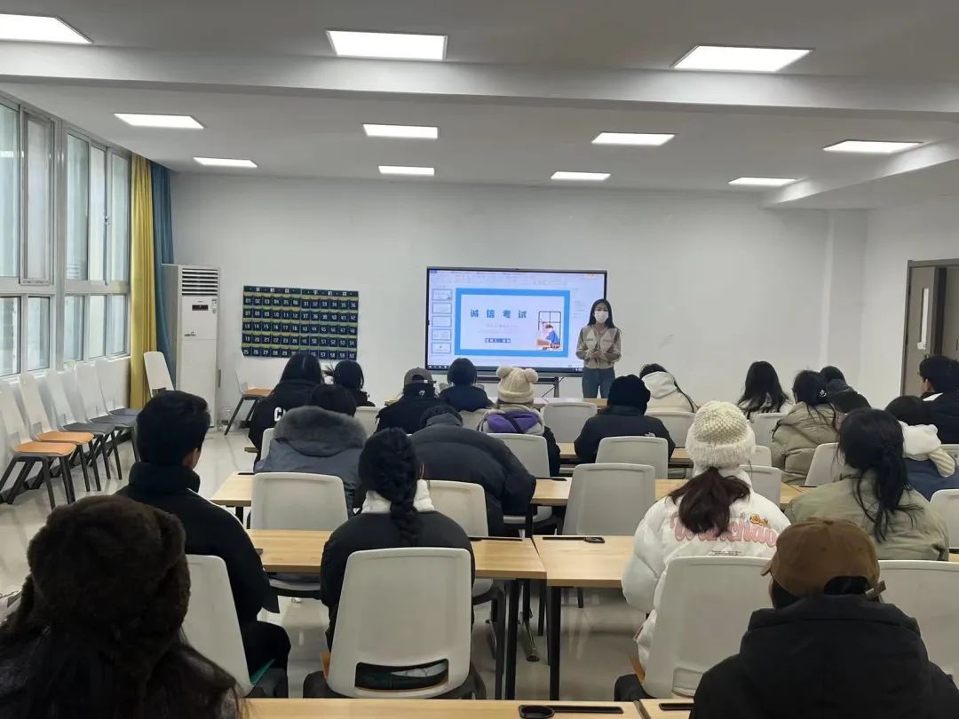 在期末考试来临之际,为进一步培养我院学子的诚信观念,加强考风考纪建设,让诚信考试意识深植每位学生心中,我院席阳老师于12月26日在7B102室召开“诚信为本,严谨求学”为主题的动员会。