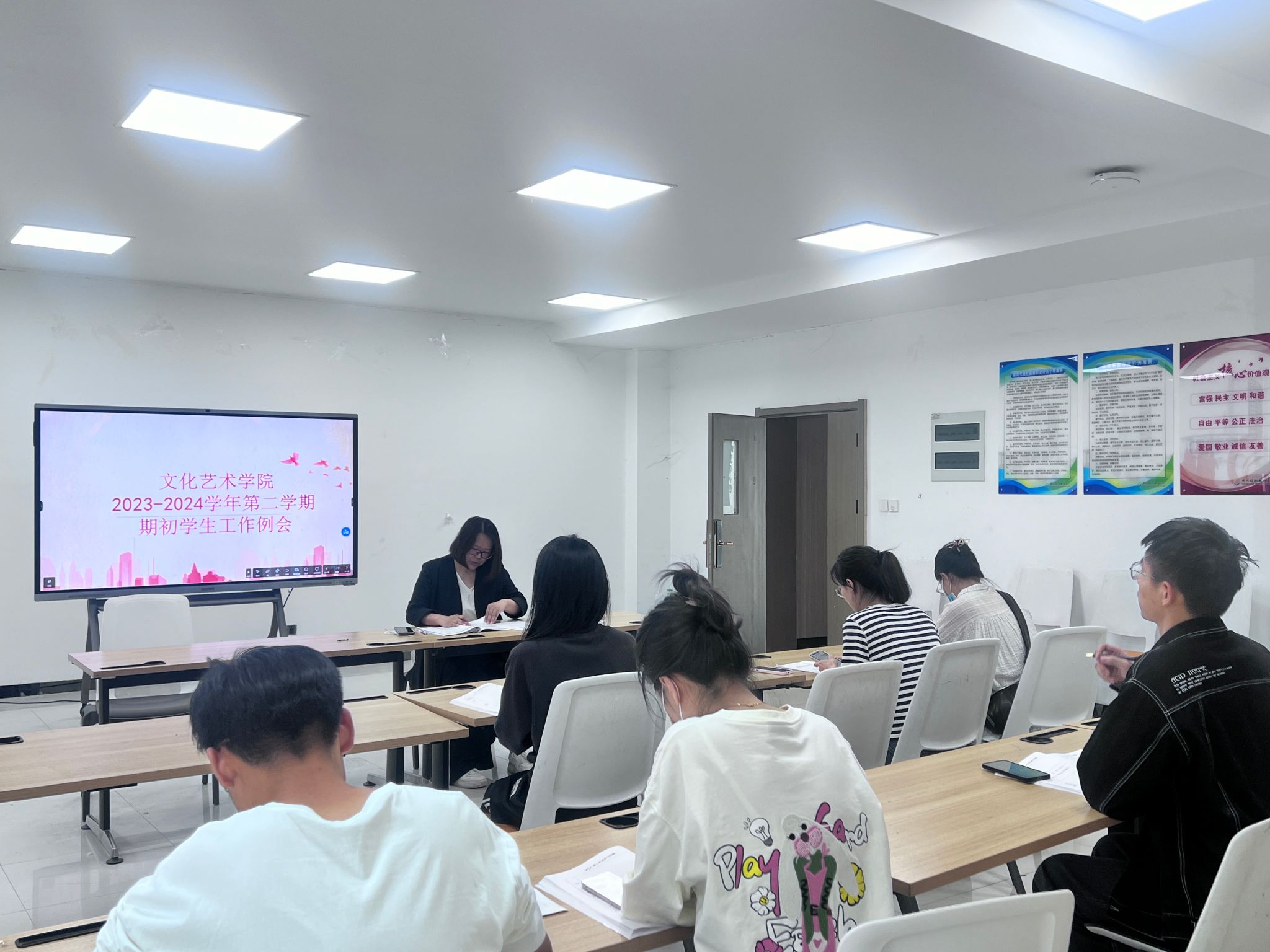 5月7日下午,我院在7B102室组织召开第六次学生工作例会。此次会议由党总支书记杨慧丽主持,团总支书记冯思源以及全体专兼职辅导员参加会议。