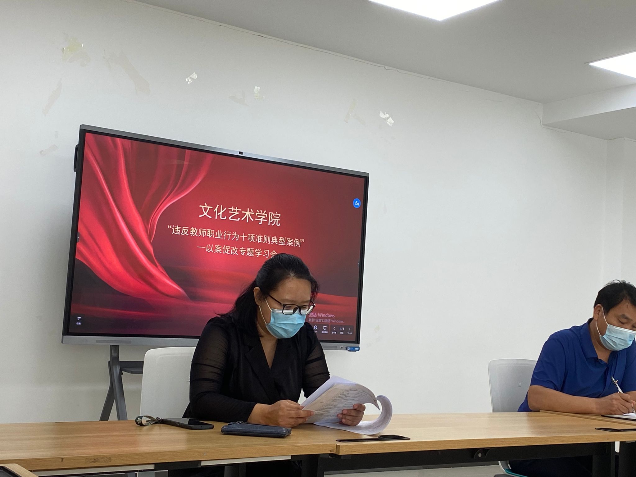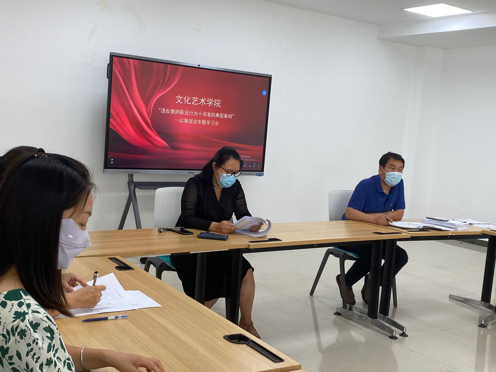 文化艺术学院召开“违反教师职业行为十项准则典型案例”以案促改专题学习会