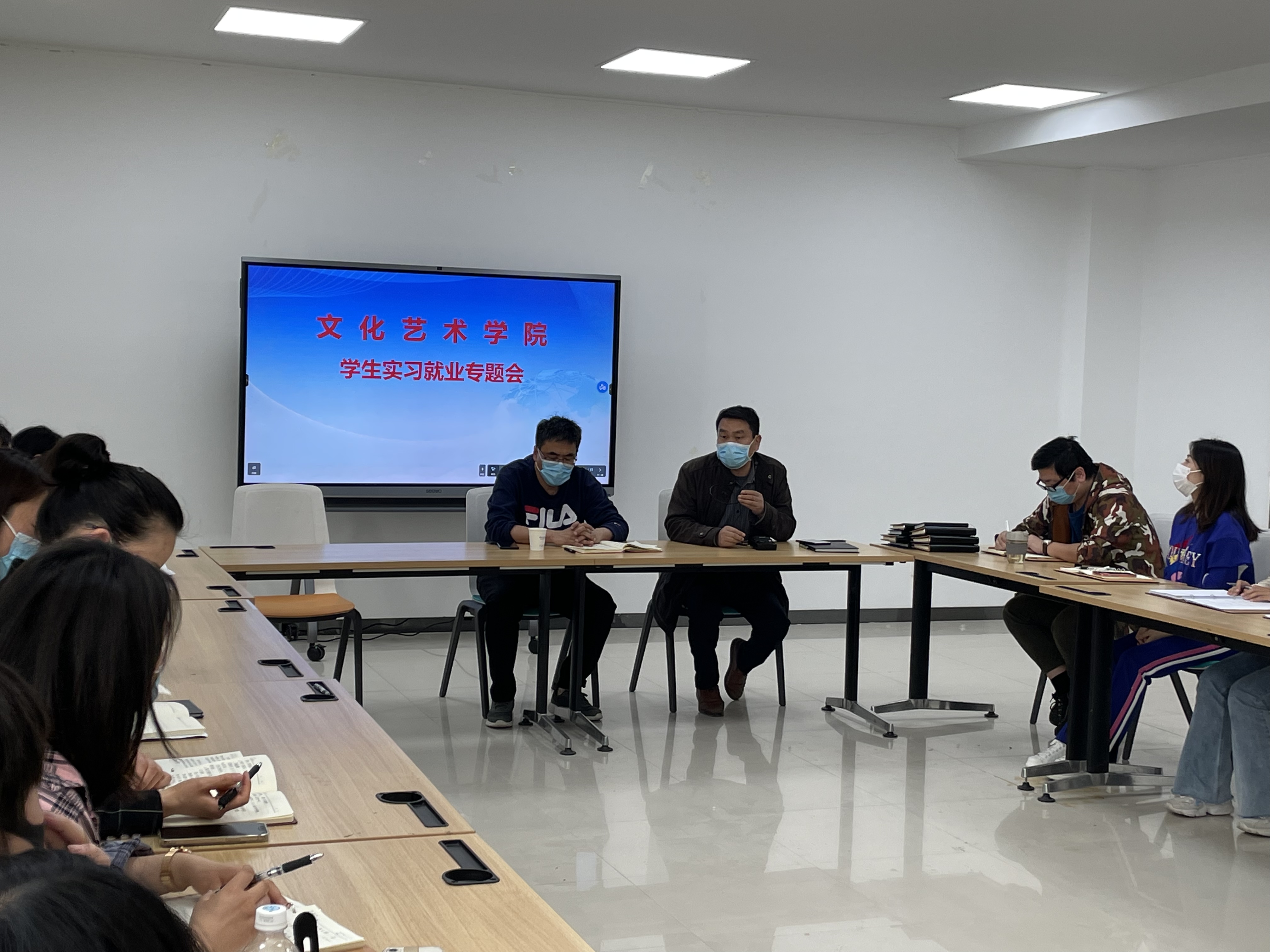 为切实做好疫情期间2022届毕业生就业及相关工作,2022年4月20日,文化艺术学院在7B102会议室召开就业工作专题会。会议由文化艺术学院副院长韩志孝(主持工作)主持,特别邀请到招生就业中心主任邝安全莅临指导,各专业负责人和实习指导教师、2022届毕业班班主任老师参加会议。