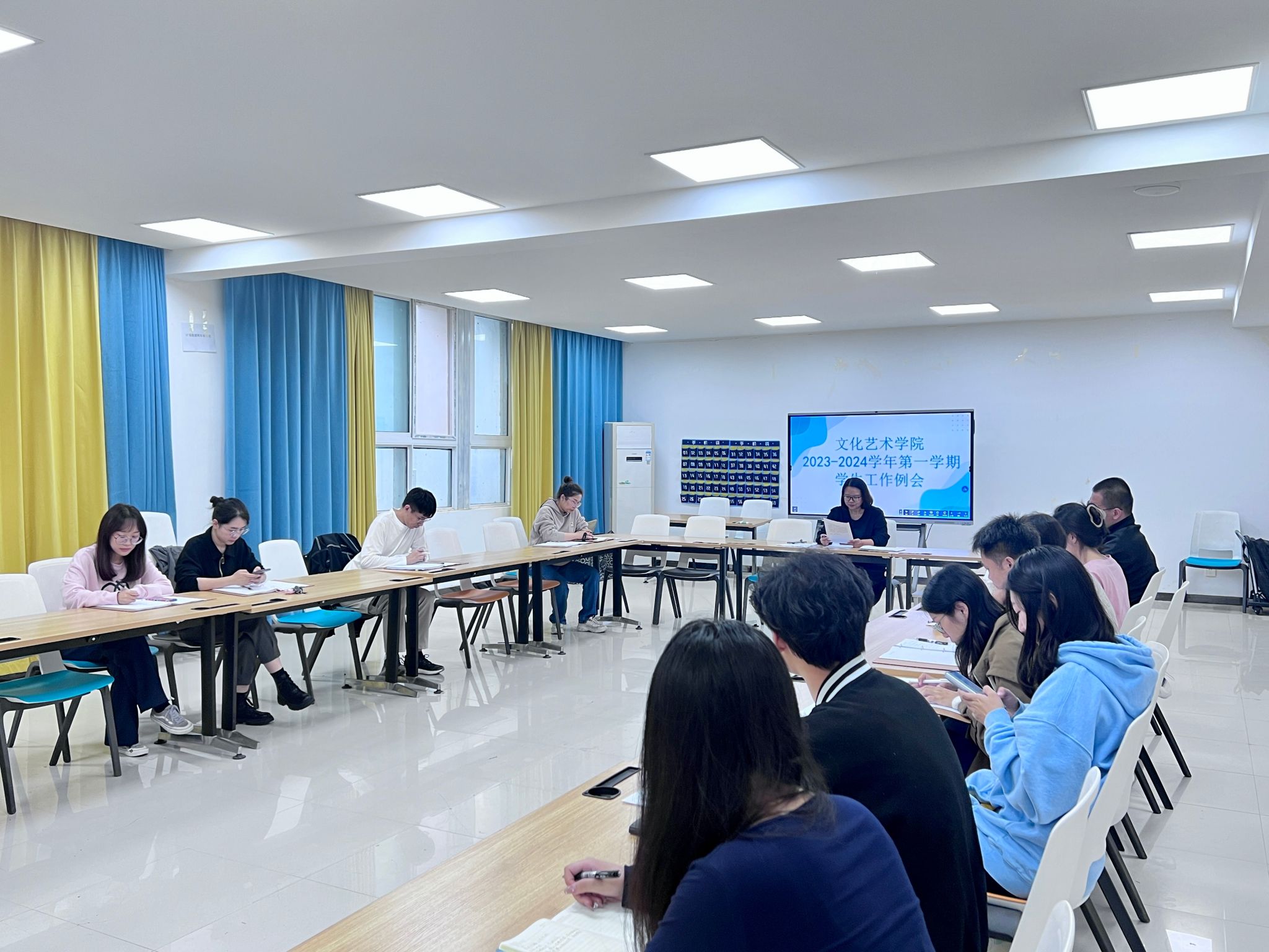 为了确保同学们的假期安全以及各项工作的稳定开展,9月26日下午四点,文化艺术学院在7B102教室召开学生工作例会暨安全教育会。会议由我院党总支书记杨慧丽主持,团总支书记冯思源以及全体专兼职辅导员参加会议。