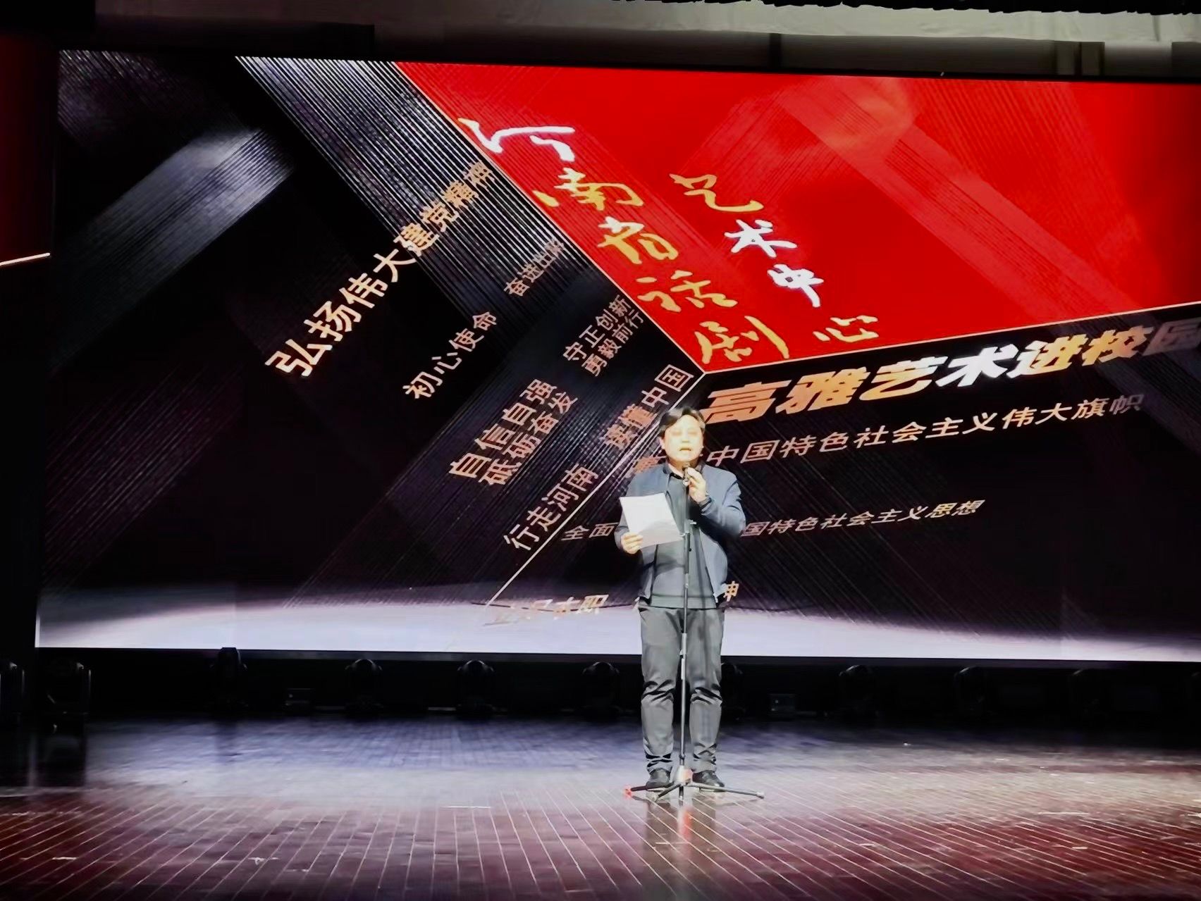 为深入学习贯彻落实习近平文化思想和党的二十大关于文化建设的战略部署,切实增强做好新时代新征程宣传思想文化工作的责任感使命感,落实好立德树人根本任务,提高广大青年学生的艺术修养和文化素养,加强校园文化建设,3月28日晚,由河南省教育厅、河南省文化和旅游厅联合主办的“高雅艺术进校园”--河南省话剧艺术中心专场演出,在pp电子游戏平台网站象湖校区艺术中心隆重上演。