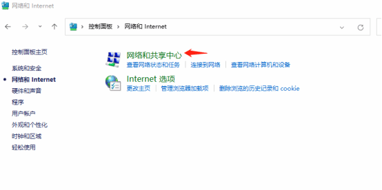 3. 进入后,选择“网络和共享中心”