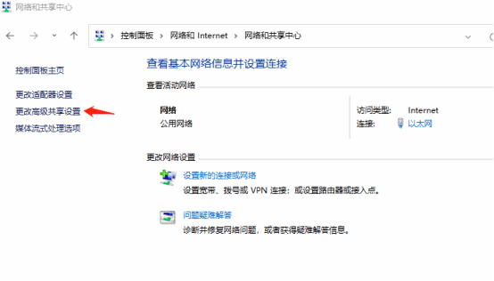 4. 进入网络和共享中心后,即可对网络进行系统设置,选择左侧“更改适配器设置”