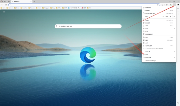 第一步:打开edge浏览器,点击右上角的三个点,然后再点击设置。