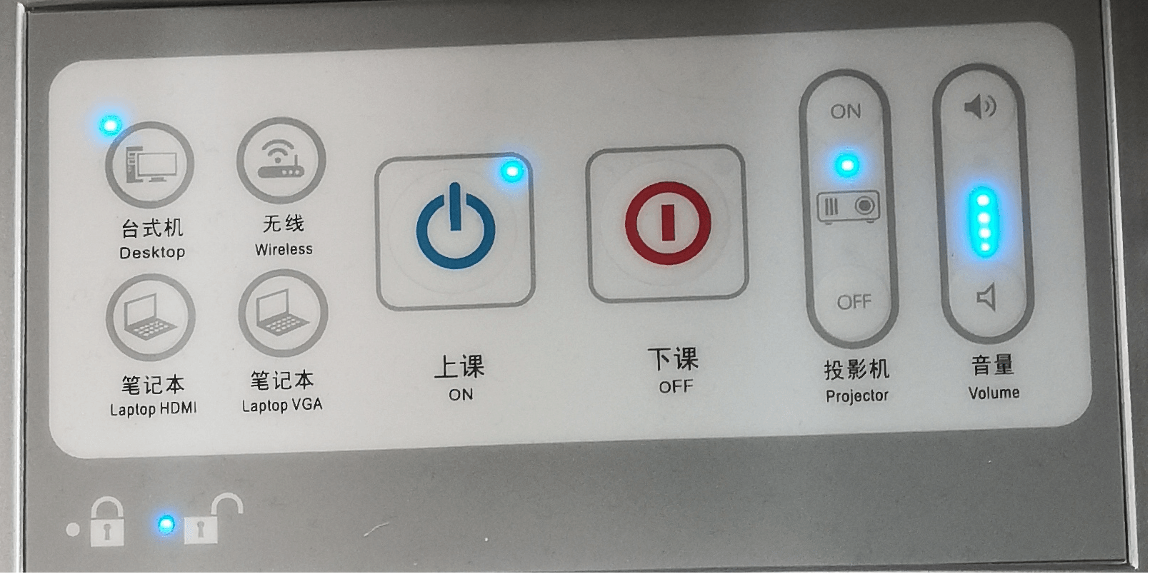 ①点击桌面控制器上的“投影开”进行尝试。
