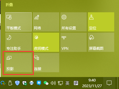 点击桌面右下角,选择“展开”—“投影”—“复制”按钮即可。