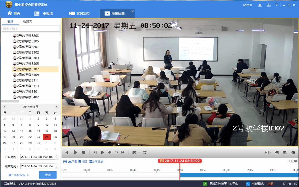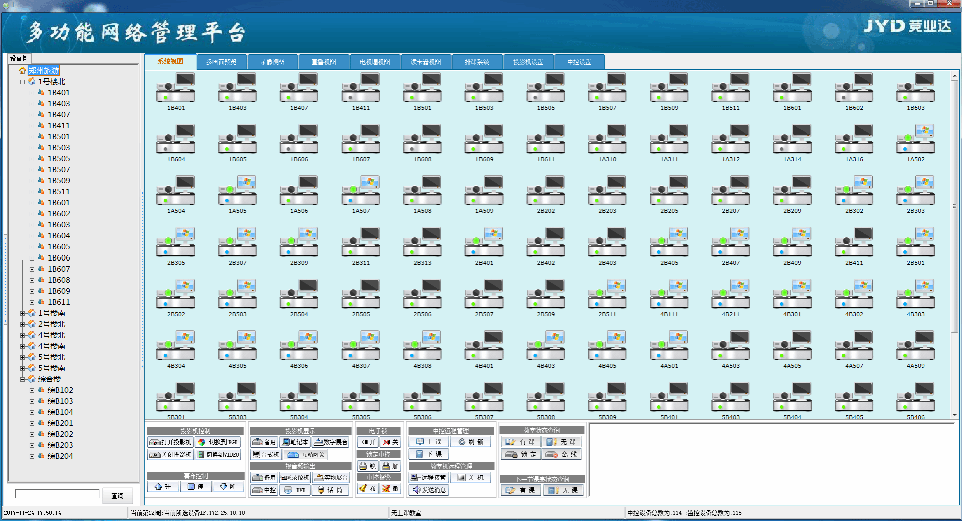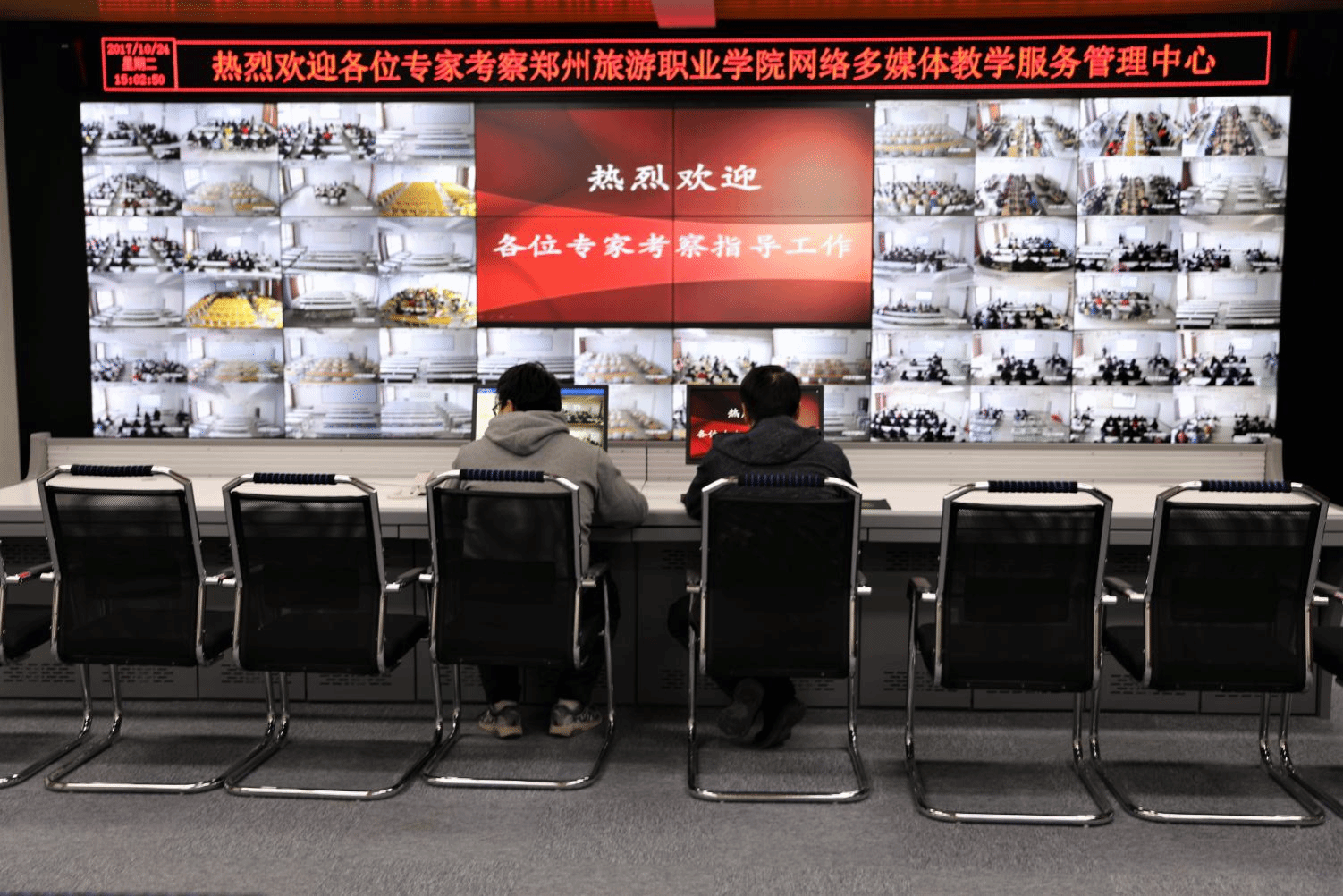 多媒体教学服务管理中心位于综合楼302,包括集中监控应用管理系统、竞业达多功能网络管理平台、万讯多媒体教室管理系统,可以提供实时监控、录像回放、远程上下课、权限管理等功能。