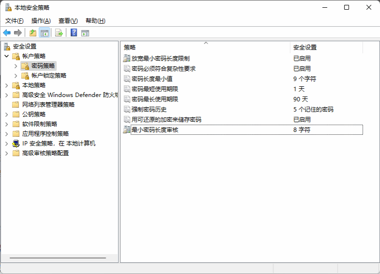Windows操作系统可以通过组策略启用“密码必须符合复杂性要求”策略。右击开始菜单,选择运行,输入secpol.msc,打开本地安全策略窗口,选择帐户策略-密码策略,在右侧窗口中进行策略设置。