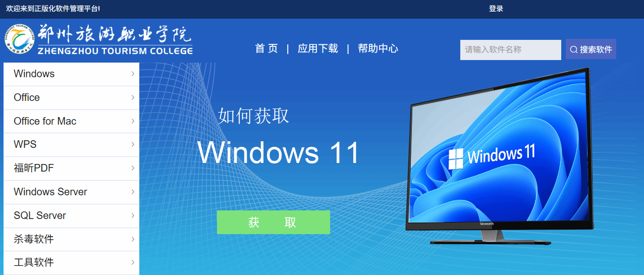 正版软件管理与服务平台访问地址:http://ms.zztrc.edu.cn/