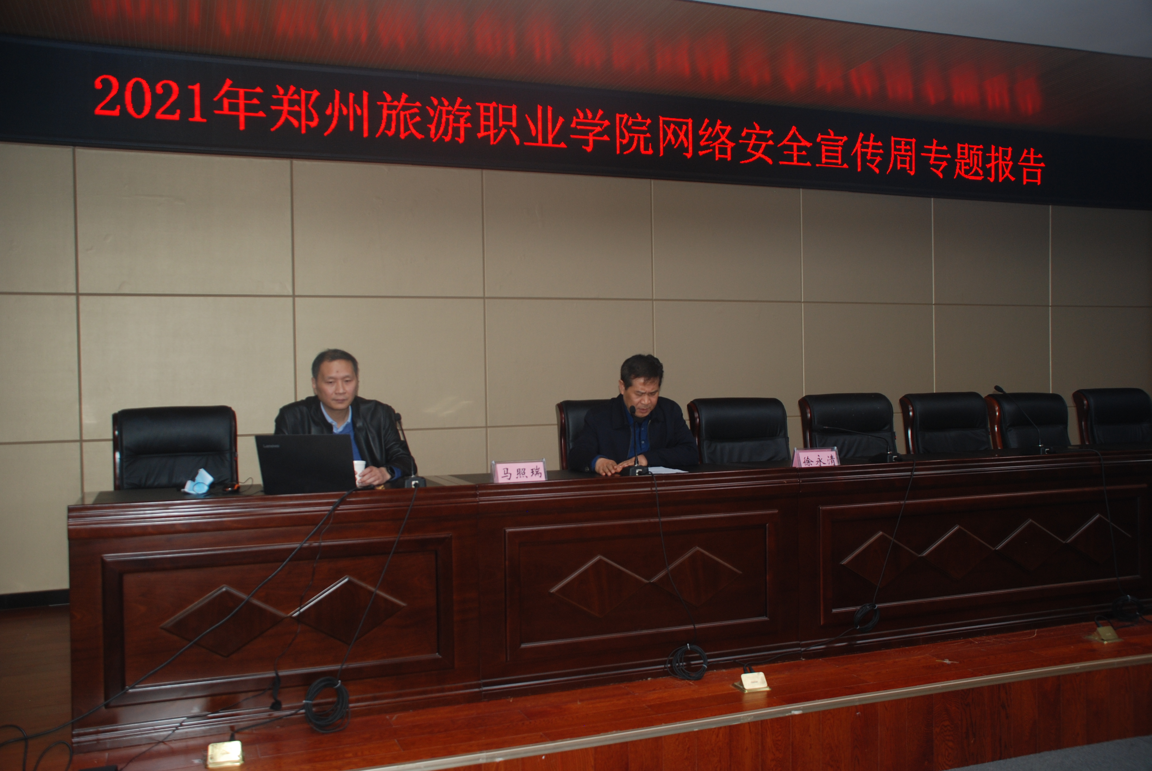 10月20日下午,由信息网络中心组织承办的2021年网络安全宣传周专题报告会在综合楼C座4楼报告厅举行,邀请河南省网络安全活动宣讲团成员、郑州轻工业大学信息化管理中心副主任马照瑞作报告。副校长徐永清主持报告会,副校长王振超出席报告会。全校副科级以上干部以及各部门、各学院网络信息管理员现场聆听报告。