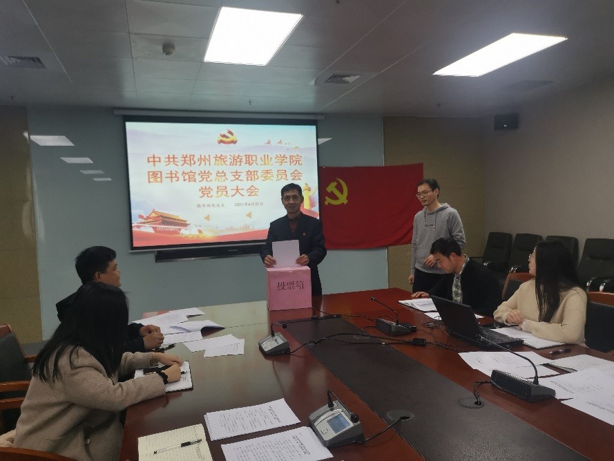 4月21日下午,图书馆党总支在图书馆1503会议室召开党员大会,选举产生新一届中共pp电子游戏平台网站图书馆党总支委员会委员。会议由图书馆办公室主任杨瑾主持,图书馆党总支书记何蜀川、图书馆馆长王庆华、信息网络中心主任张钦及全体党员参加会议。