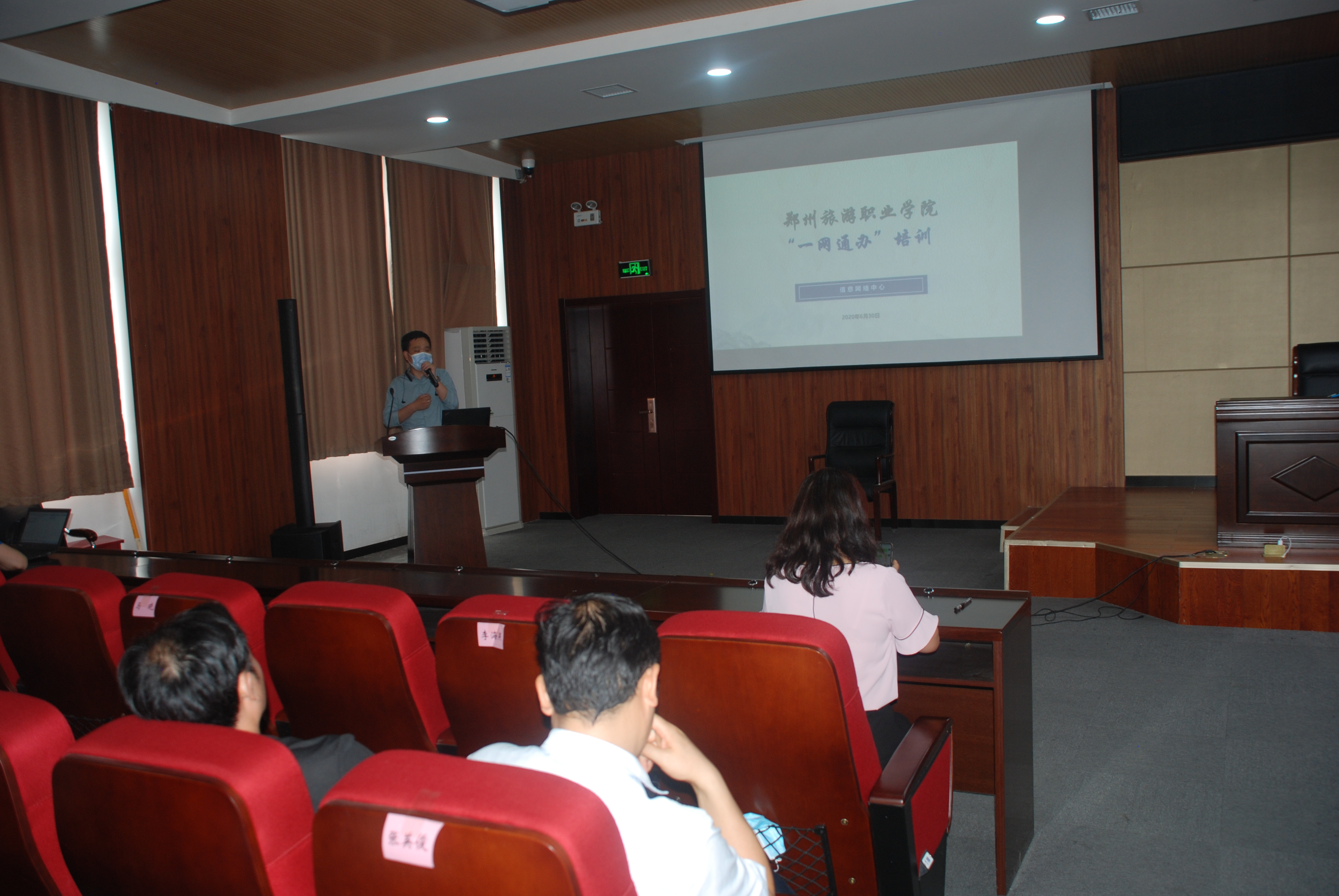 2020年6月30日下午2:00,pp电子游戏平台网站一网通办项目培训会在综合楼4C报告厅举行。培训会由信息网络中心牵头组织,各行政处室、二级学院的一网通办主管领导和联络员参加,学院主管信息化工作的副院长徐永清、党政办公室主任胡华、宣传统战部部长刘亚东等学院网络安全和信息化领导小组主要成员单位负责人应邀出席会议并在主席台就坐。