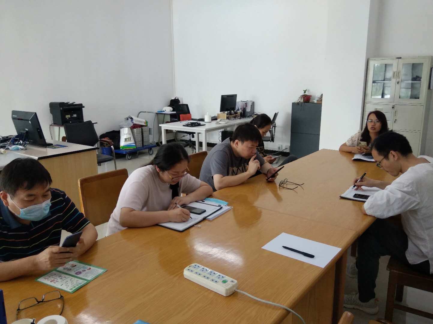 会议由信息网络中心主任张之线主持。首先传达了院长办公会上刚刚通过的部门工作职责,对职责中发生变化的部分进行了重点传达。其次结合6月30日召开的学院一网通办项目培训会会议精神,结合部门各岗位实际工作,对部门内可以进行网上办理的事项进行了讨论、梳理,并要求每个人根据梳理出来的事项进行认领、补充、完善,并按照文件要求的时间节点完成此项工作。