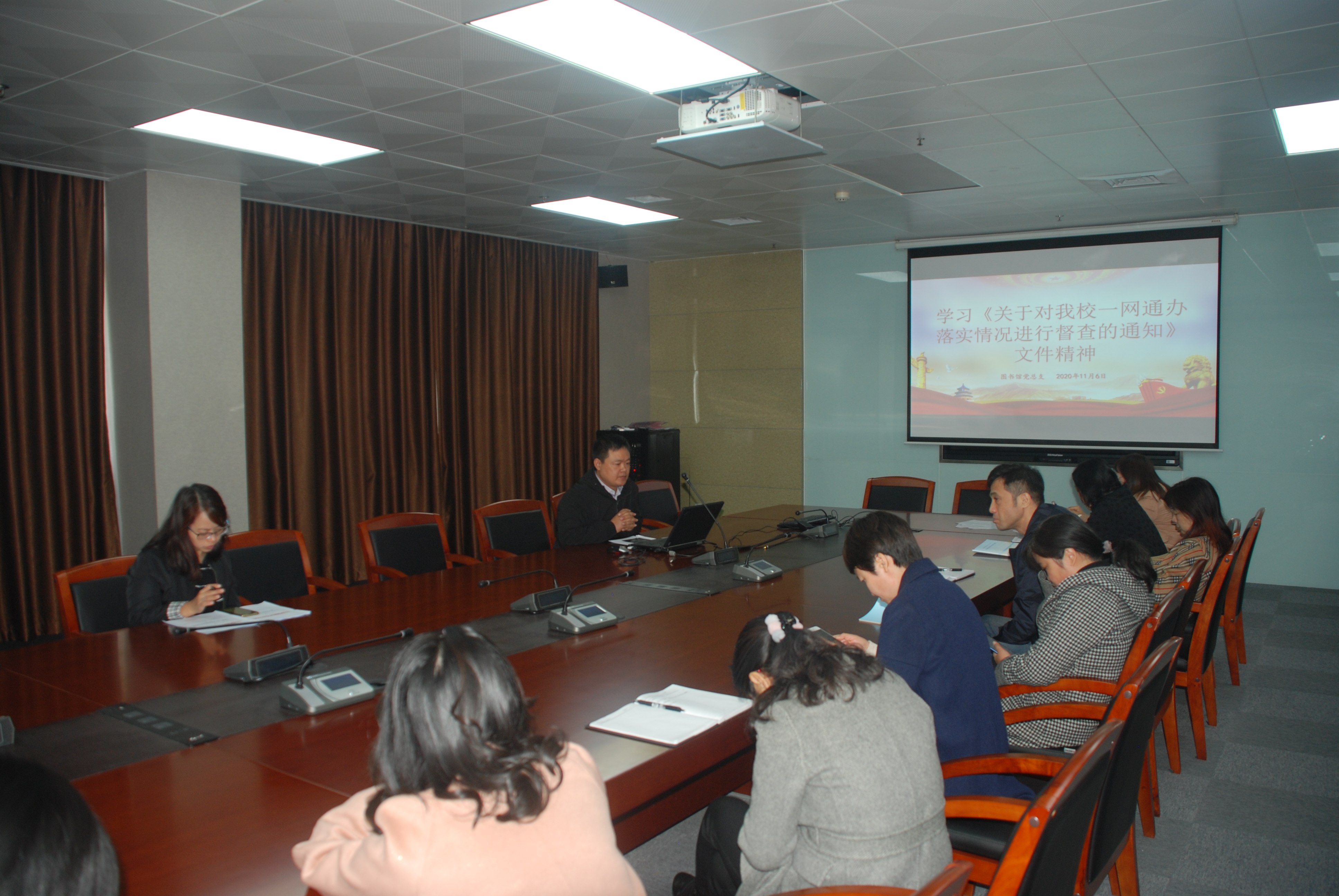 2020年11月6日,图书馆党总支在图书楼15楼会议室组织集中学习,信息网络中心全体人员参加。