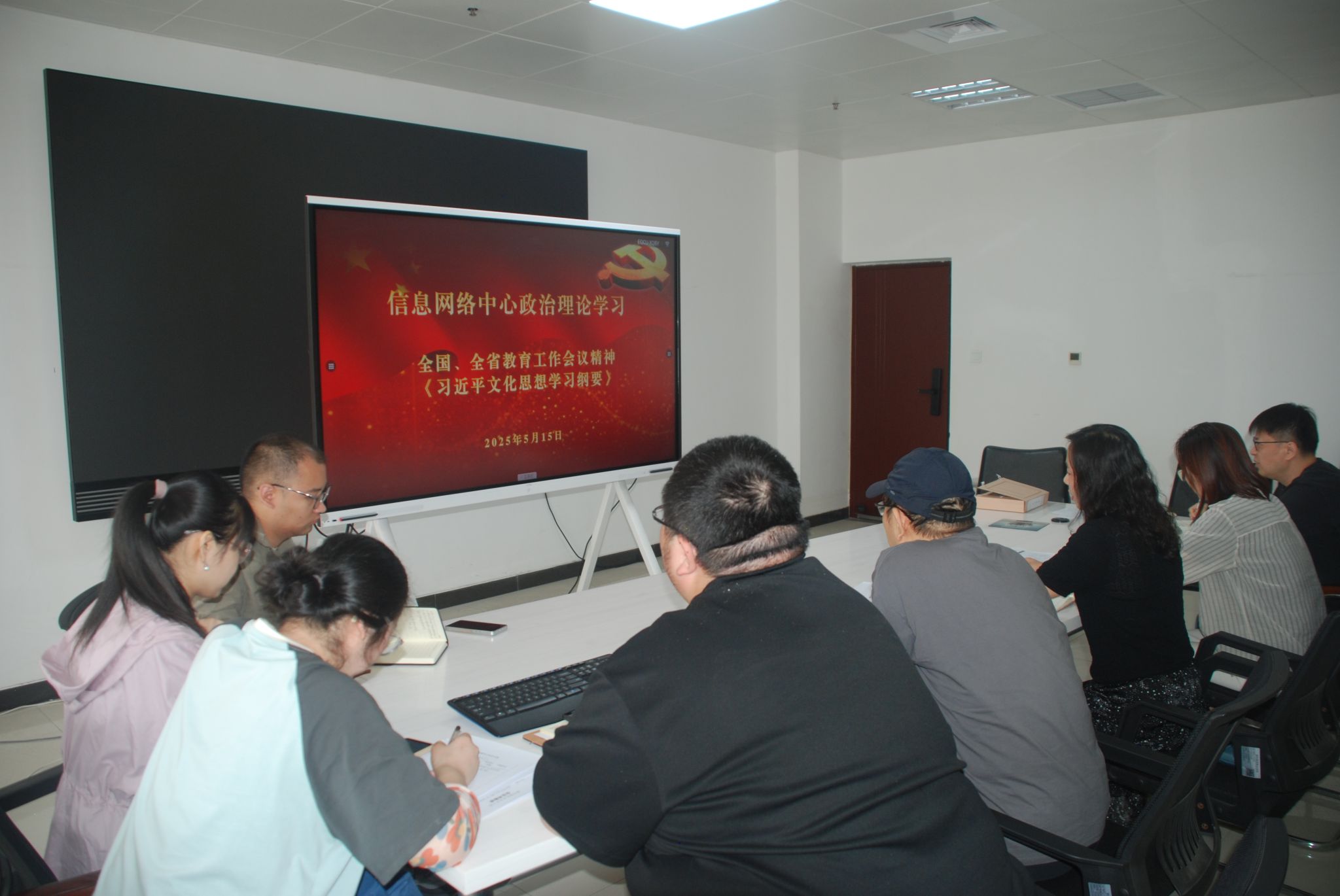 会上,张主任带领大家学习了《习近平文化思想学习纲要》和2025年全国、全省教育工作会议精神。重点解读了习近平文化思想的核心要义,强调要深刻把握"两个结合"的重大意义,特别是"第二个结合"对教育信息化工作的指导作用。她指出,作为高校信息化工作者,要自觉将习近平文化思想贯穿到网络与信息化建设全过程,为校园文化建设提供有力技术支撑。张主任对大家提出三点要求,一是要提高政治站位,深刻领会习近平文化思想的丰富内涵;二是要聚焦主责主业,将全国全省教育工作会议精神落实到具体工作中;三是要强化责任担当,为学校教育数字化转型提供坚实技术支撑。