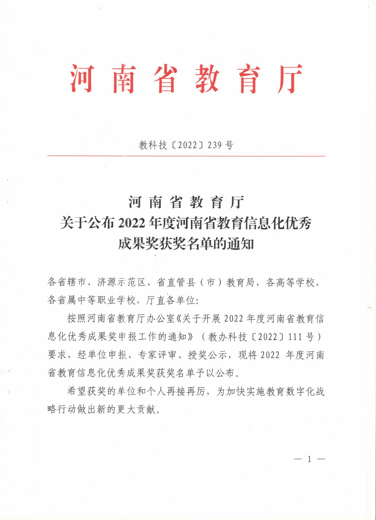 2022年7月,河南省教育厅印发了《关于公布2022年度河南省教育信息化优秀成果奖获奖名单的通知》(教科技〔2022〕)239号),pp电子共有6项作品获奖,其中一等奖2项、二等奖4项。