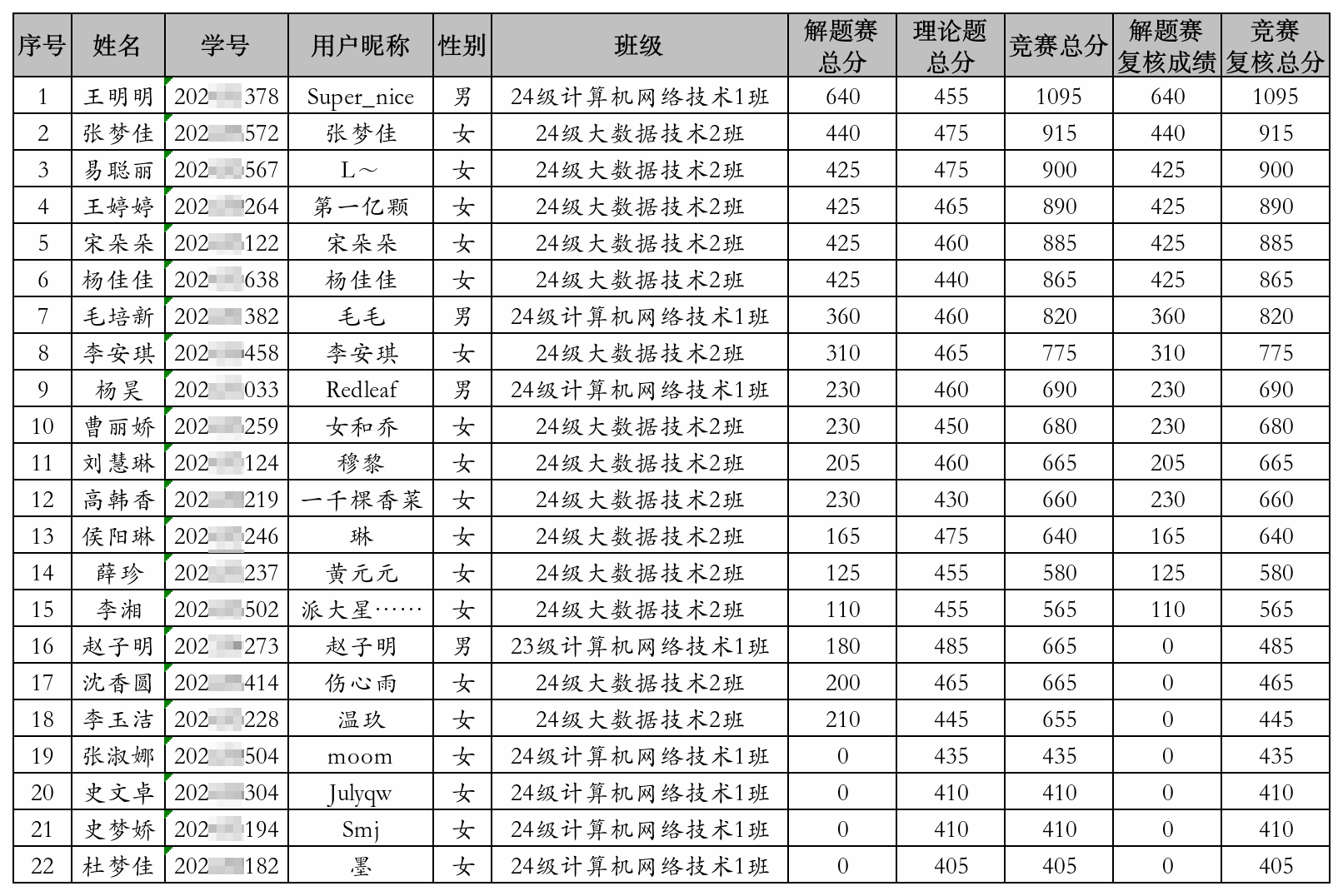 公示期间如对成绩有疑问请联系信息网络中心宁老师,电话:61130122,经核实后统一向组委会反馈。