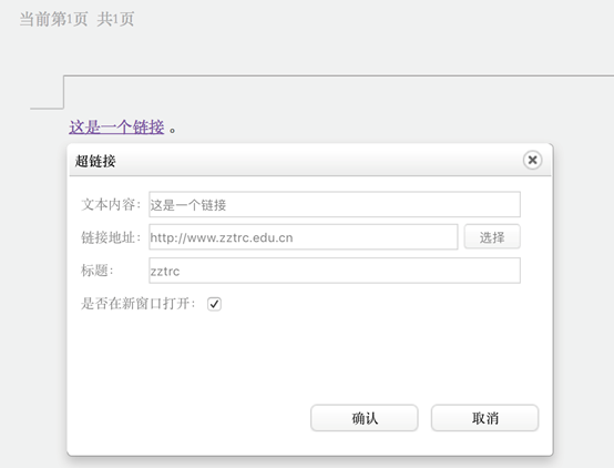 如果在文章中需要添加一个文字链接或者图片链接,可以单击编辑工具栏中的插入超链接按钮