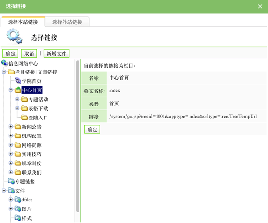 如果要跳转到本网站内其他栏目,可以单击“选择”按钮,直接选择即可。如图所示。