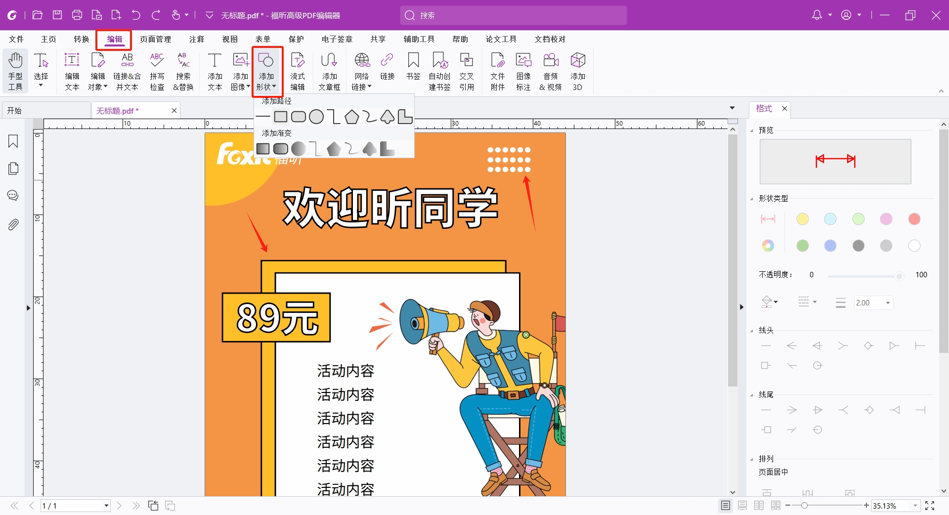 我们可以利用福昕高级PDF编辑器进行简单的设计排版,一起来看看。